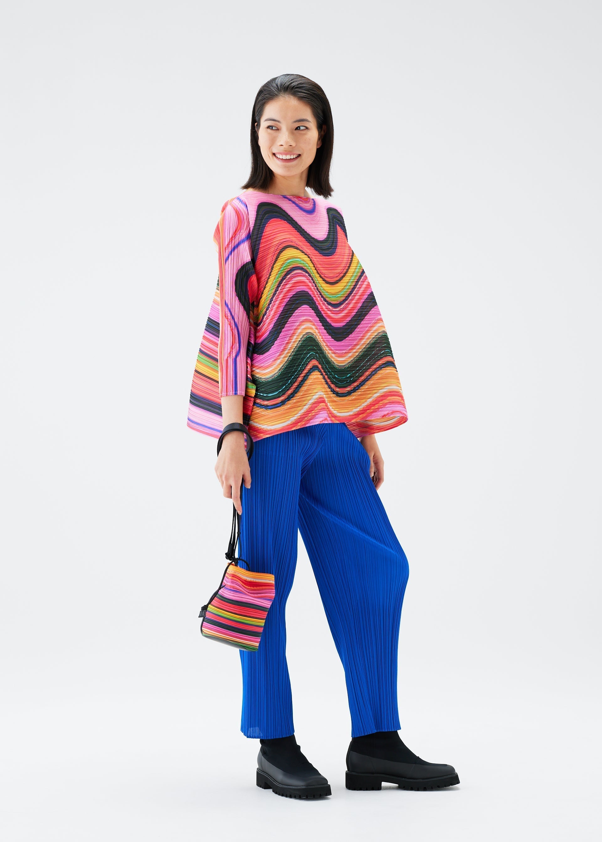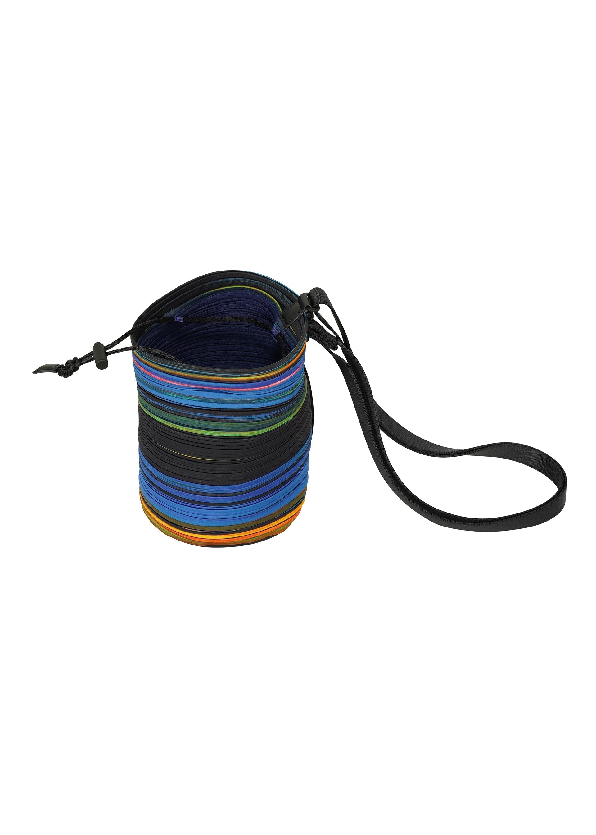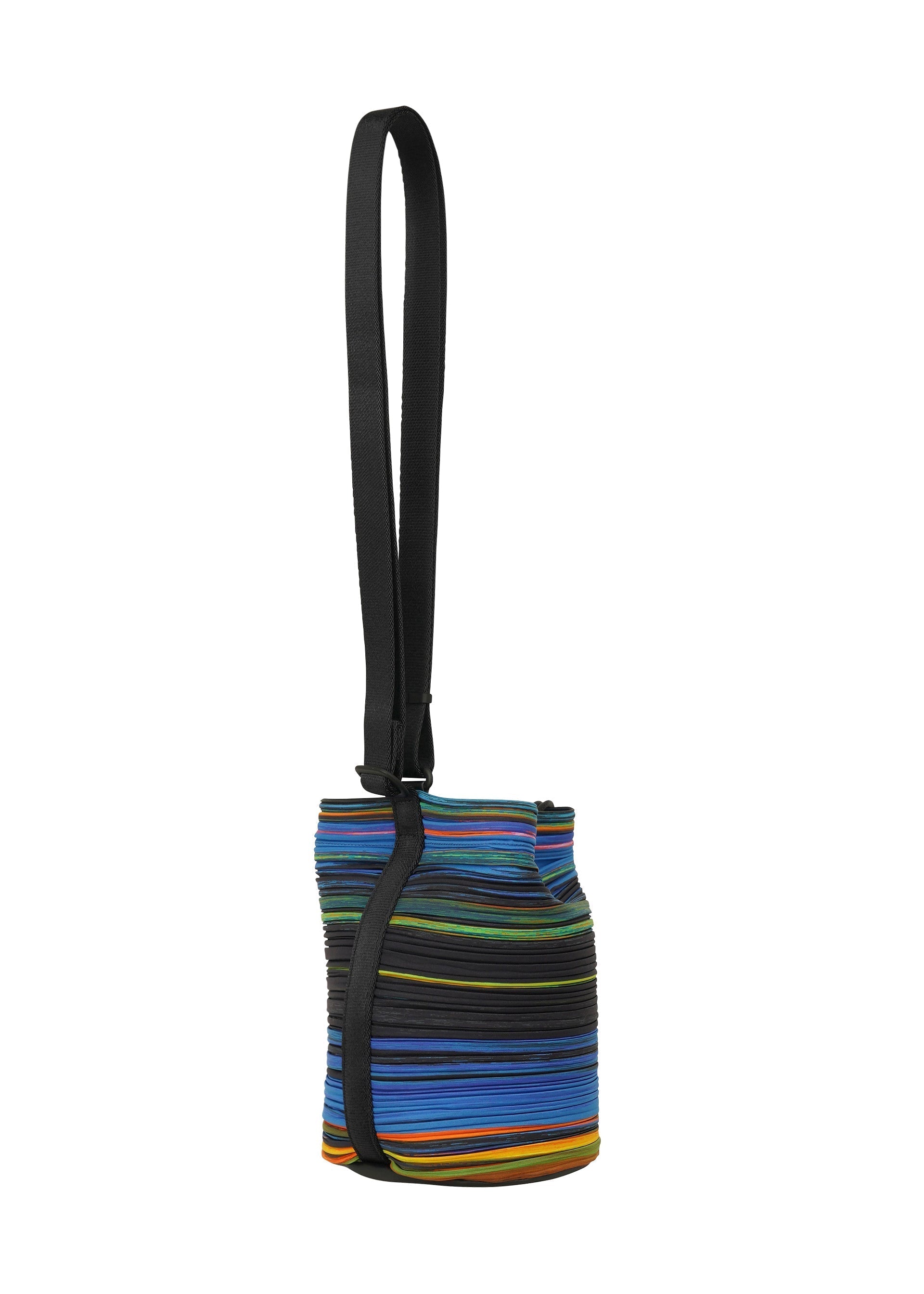 This pleated bag is characterized by its cylindrical silhouette. The length of the shoulder strap can be adjusted.
