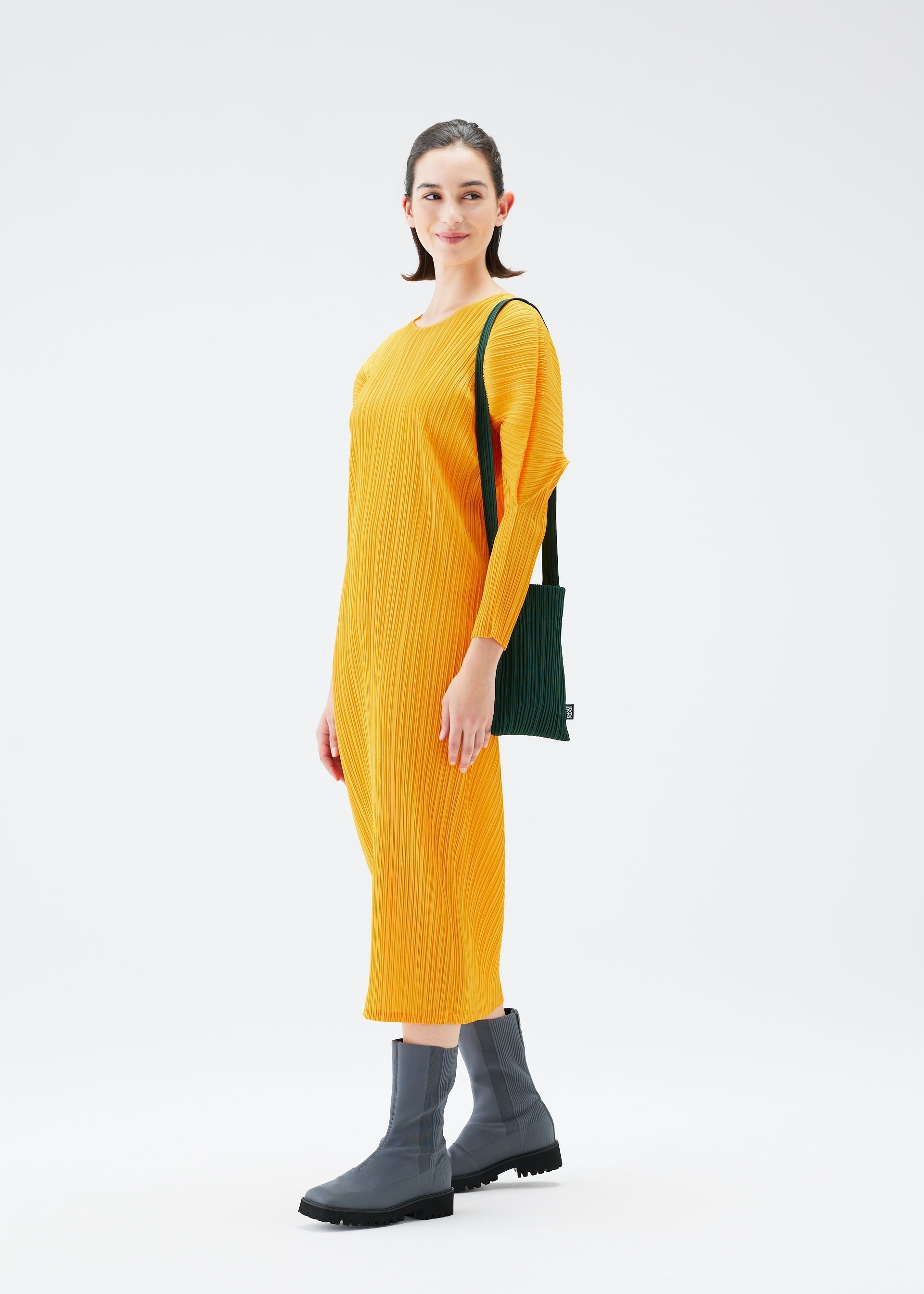This washable knit bag can be styled in outfits with pleated items.