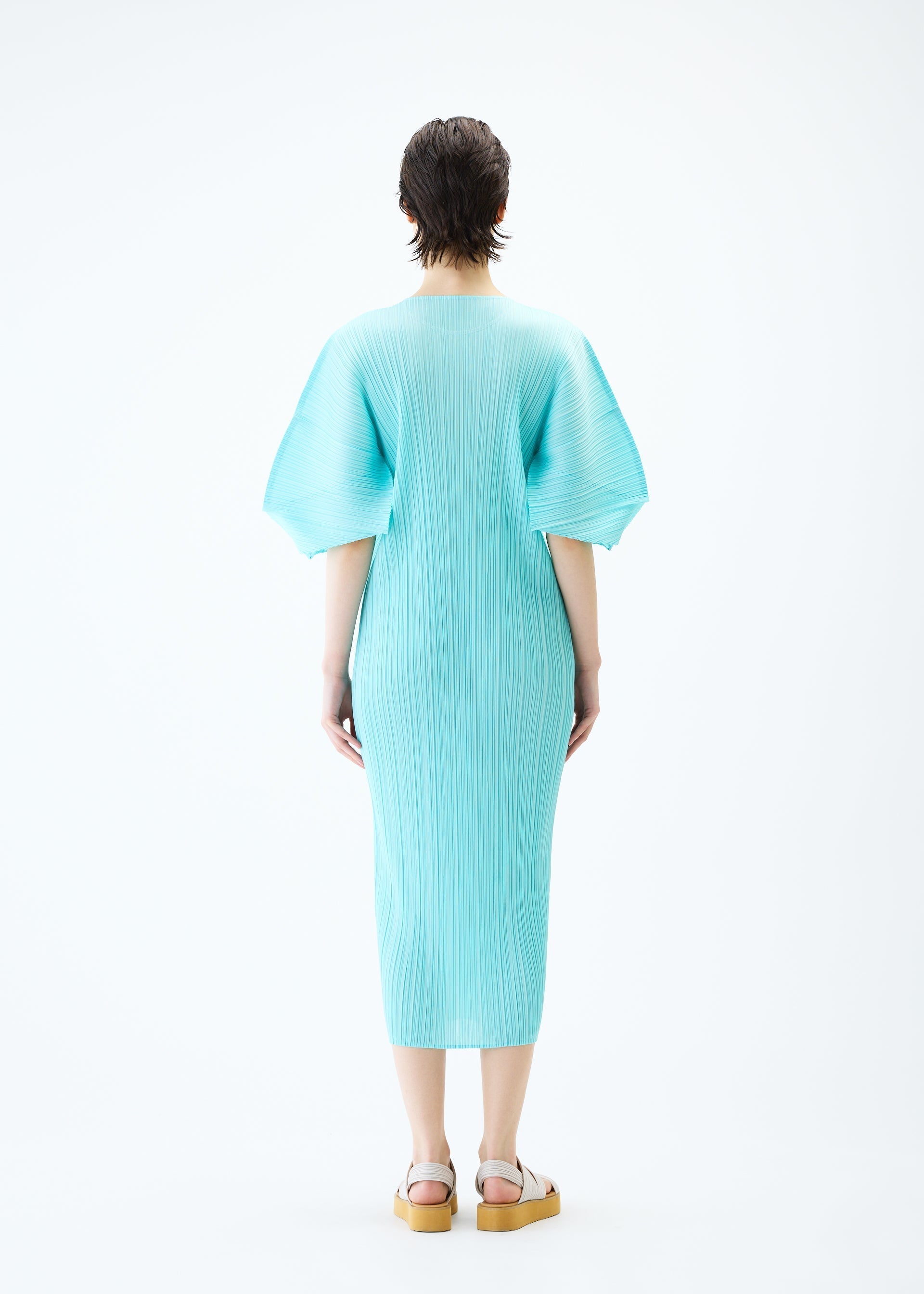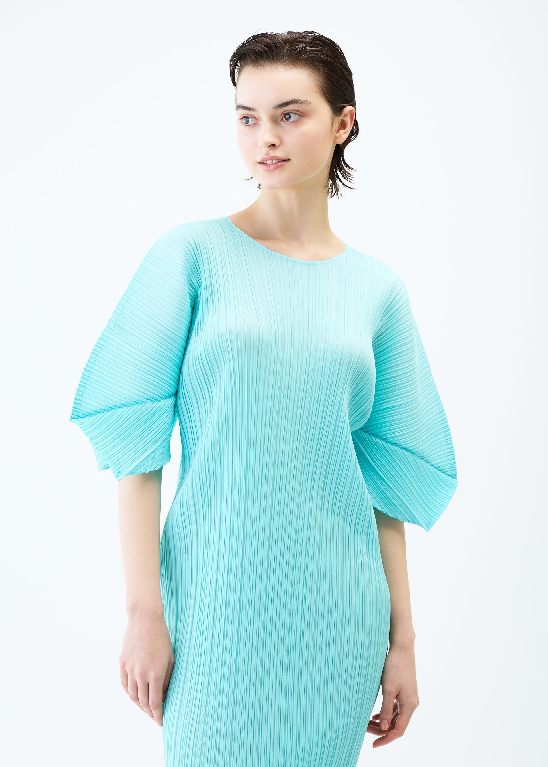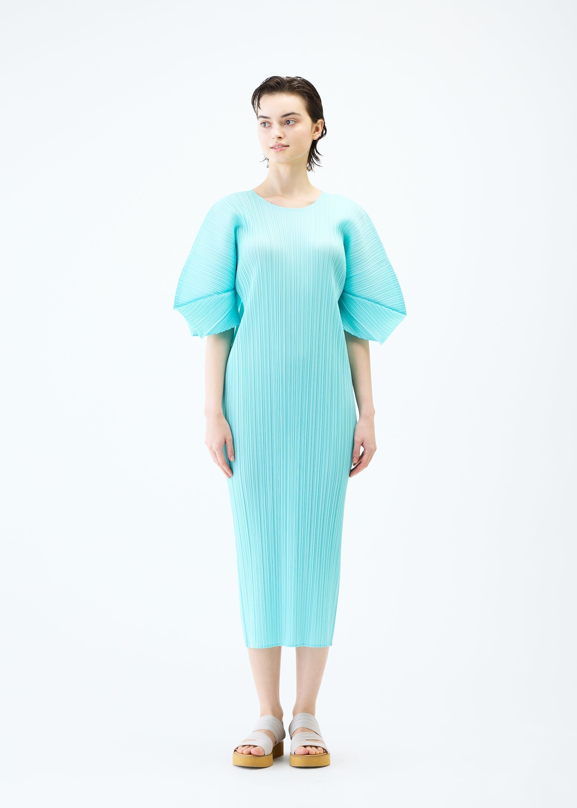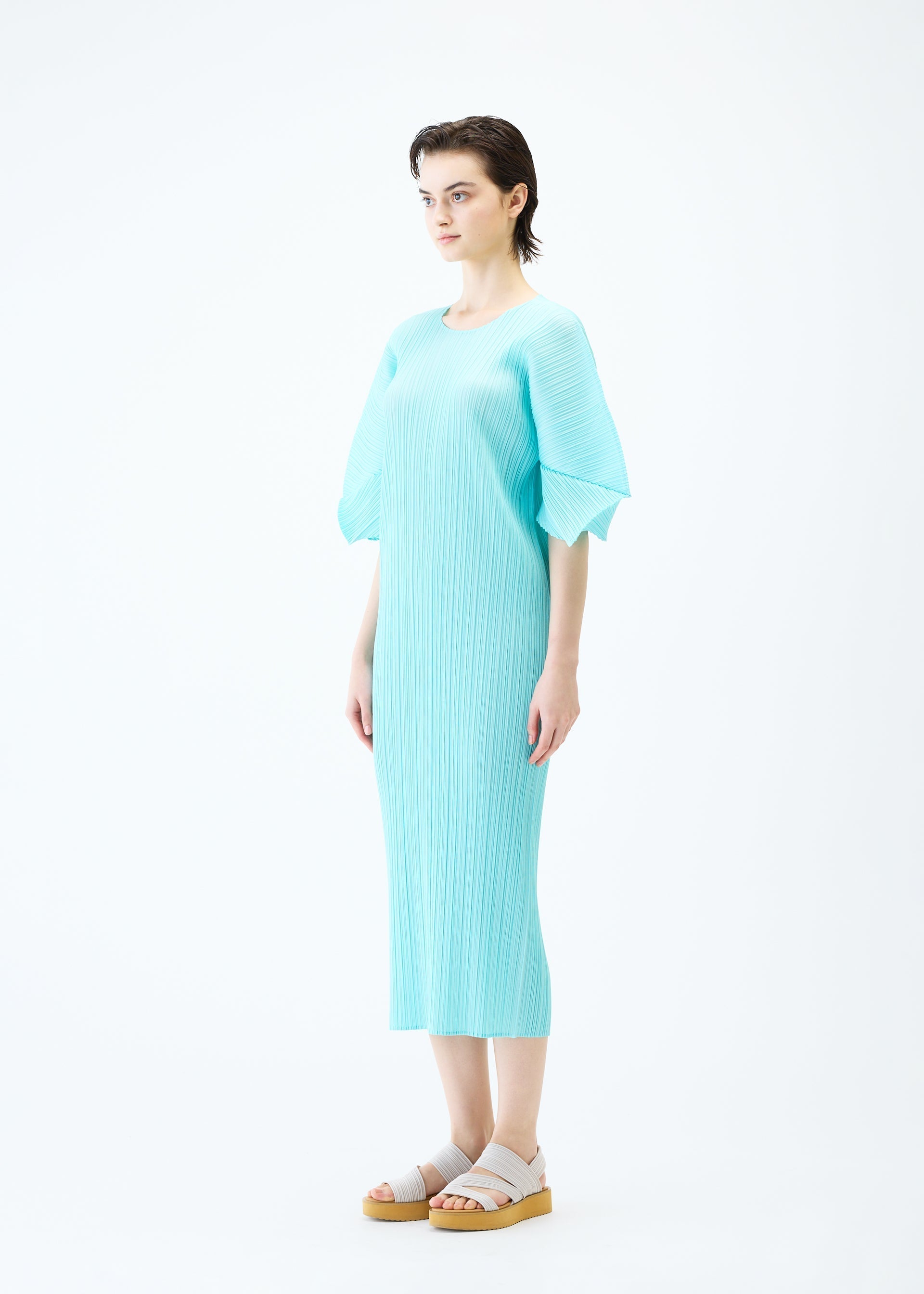 This round-neck, short-sleeved dress is available in colors inspired by the sparkling look of the surface of water.