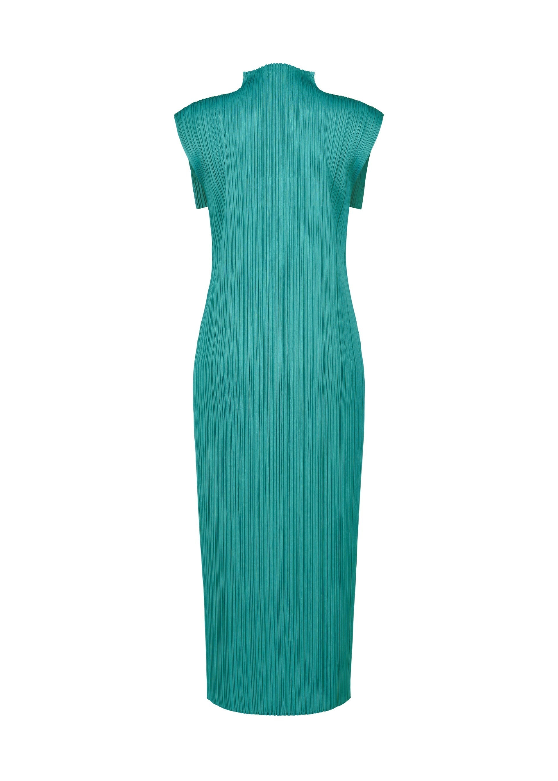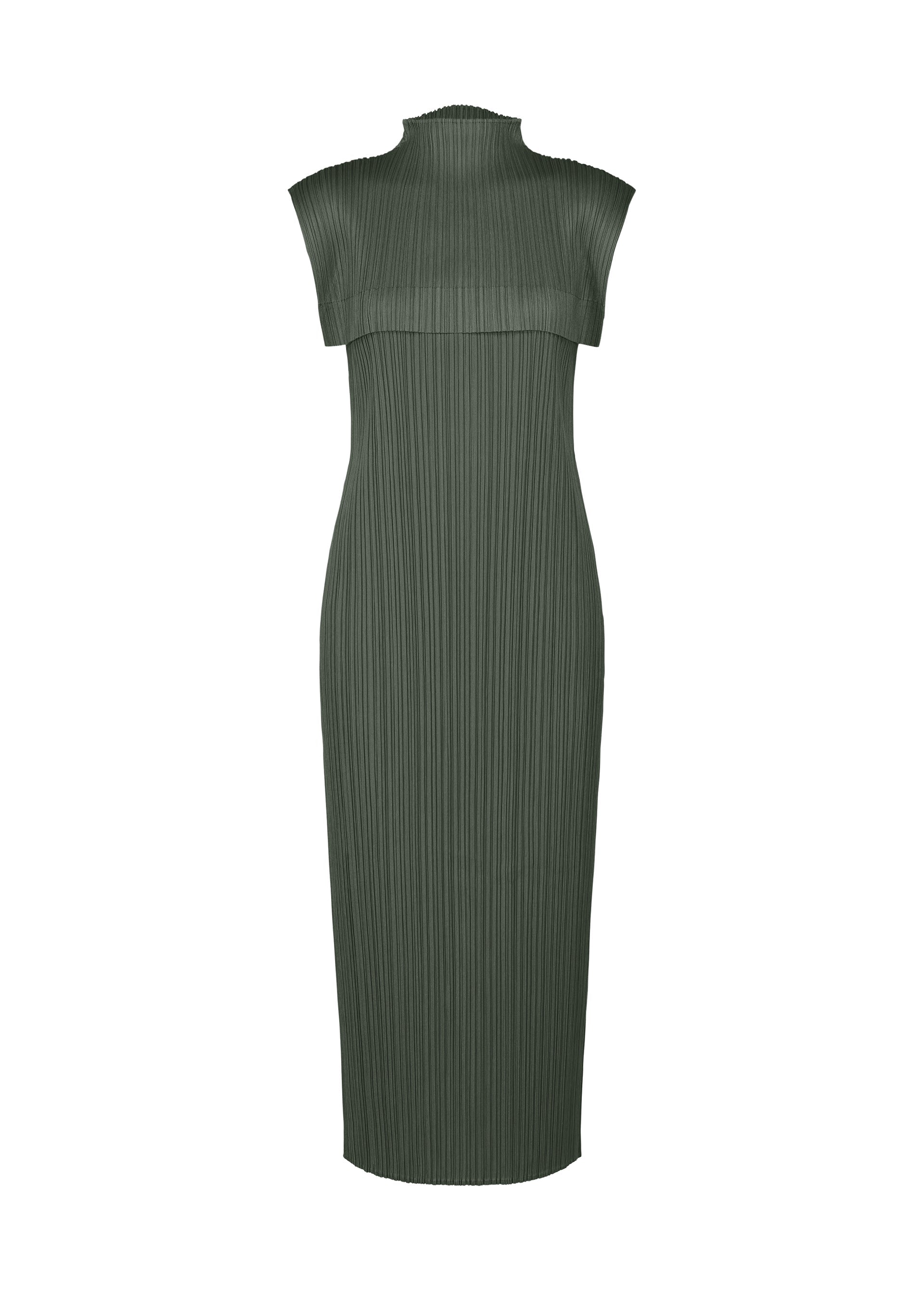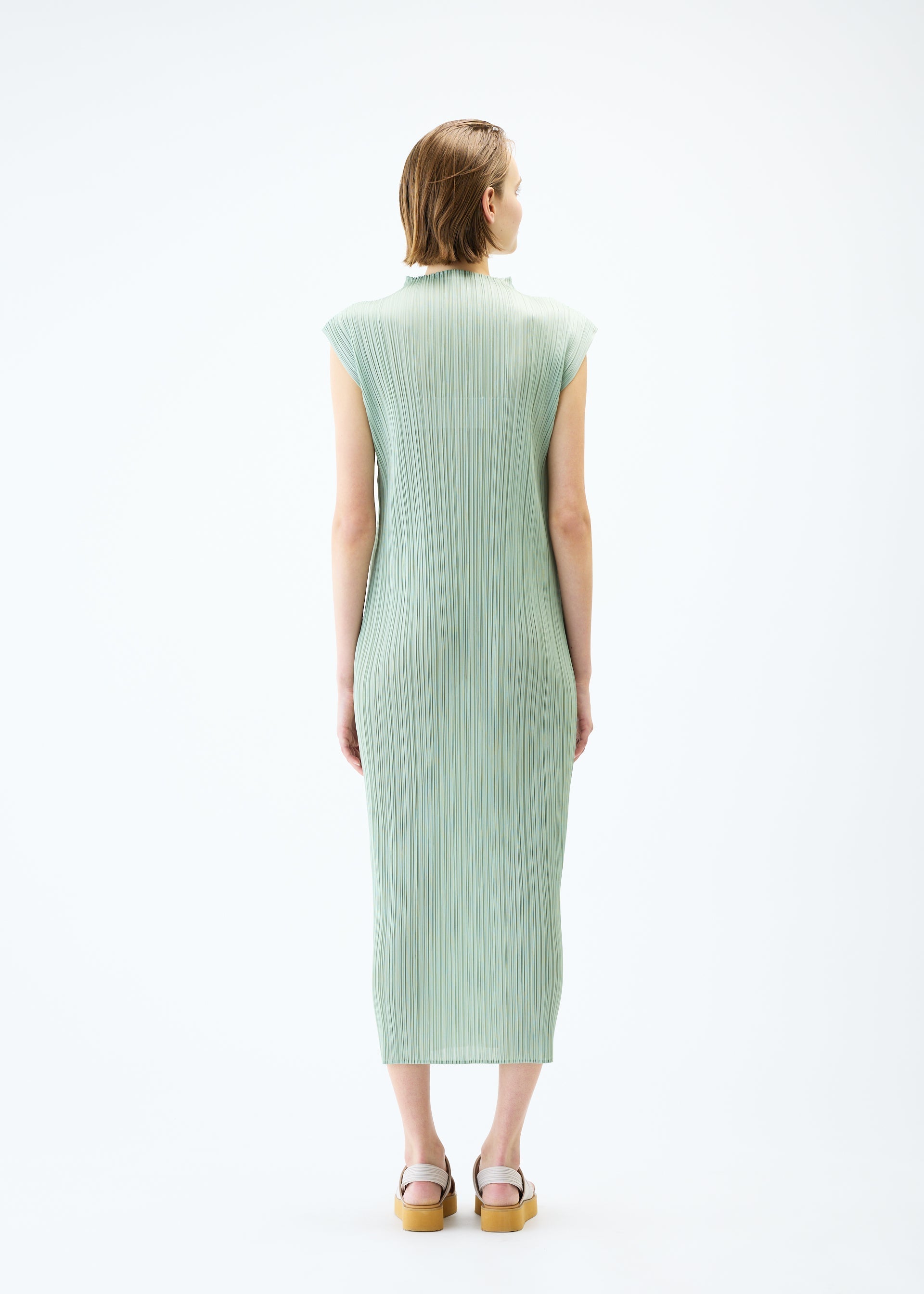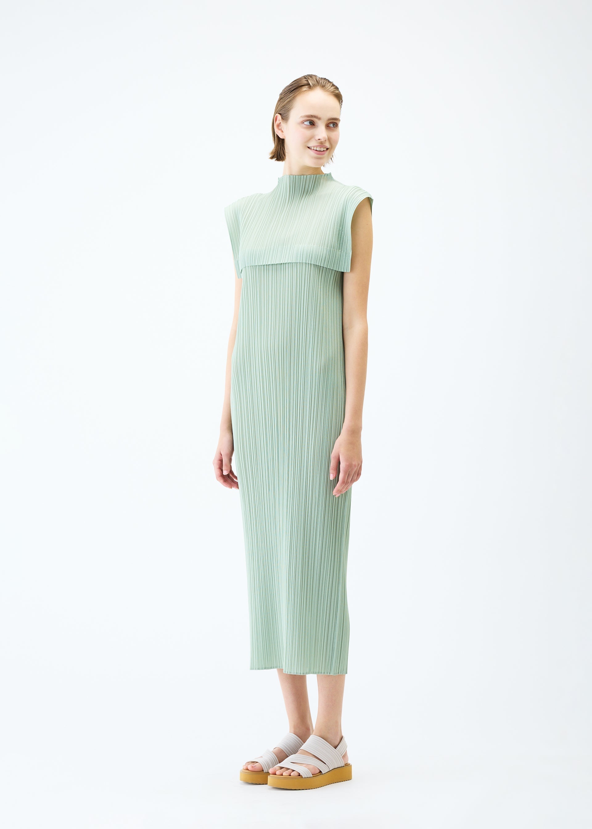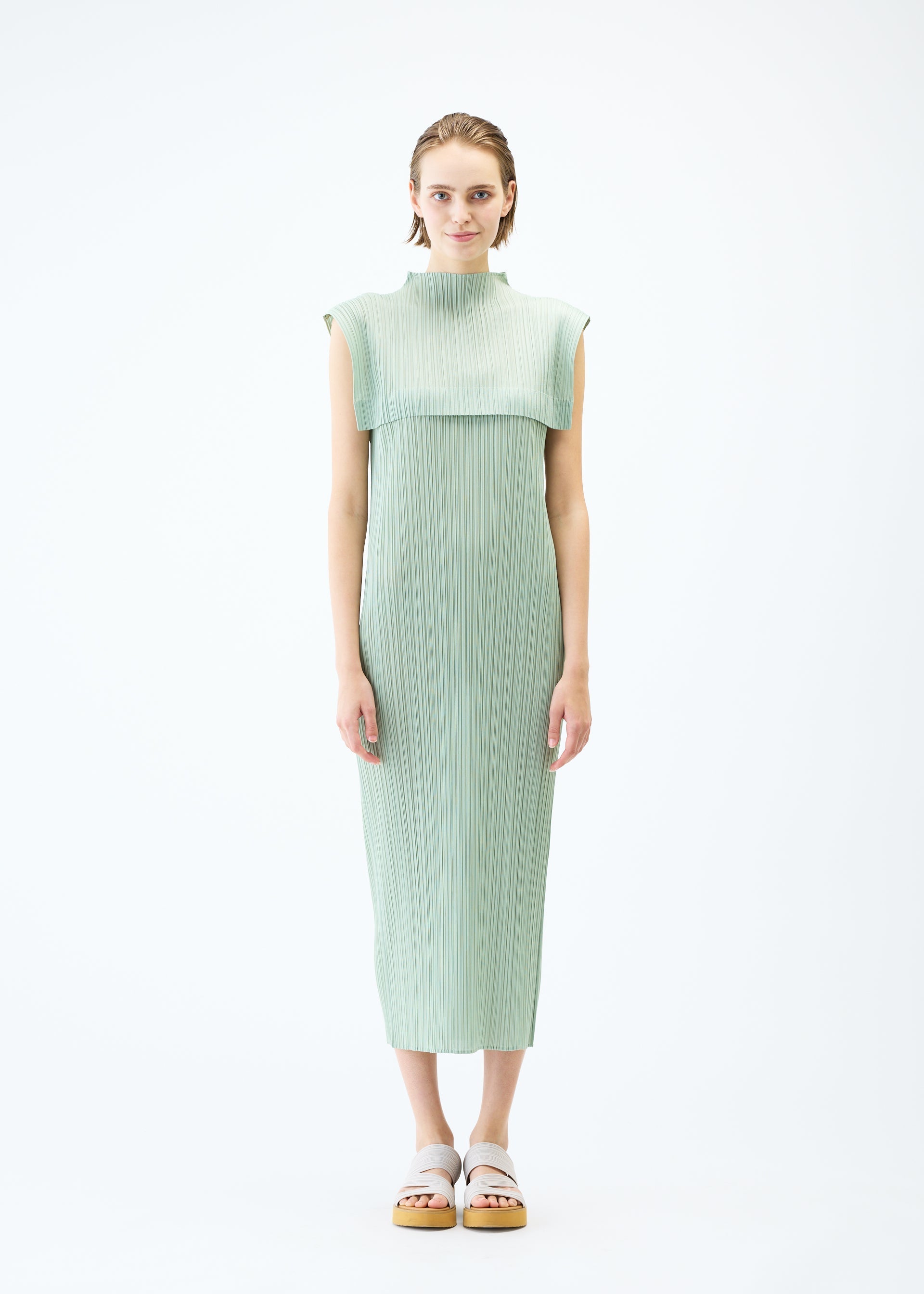 This high-neck, sleeveless dress is available in colors reminiscent of the gentle light of early summer. The green gradation is expressed in soft, subdued hues.