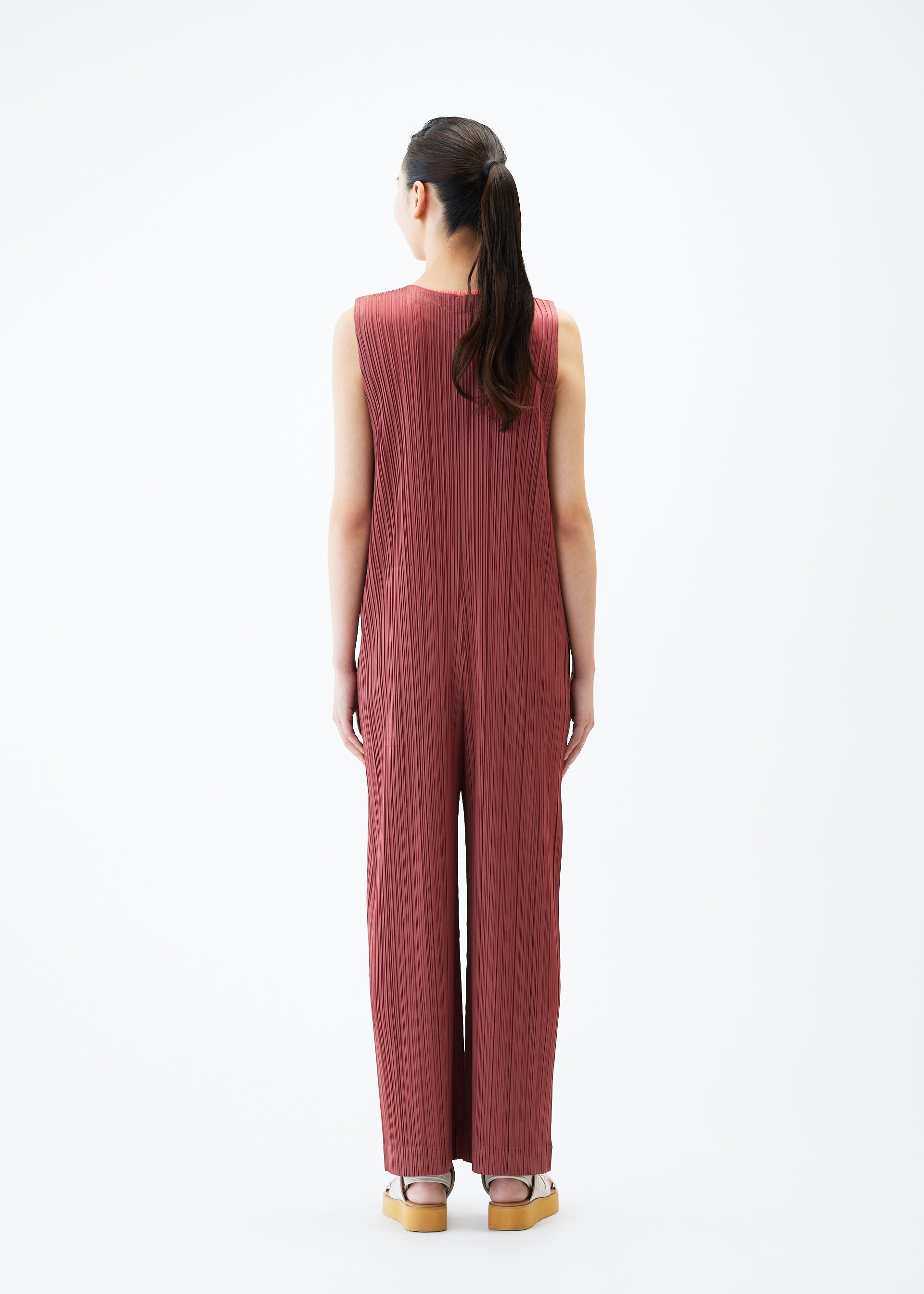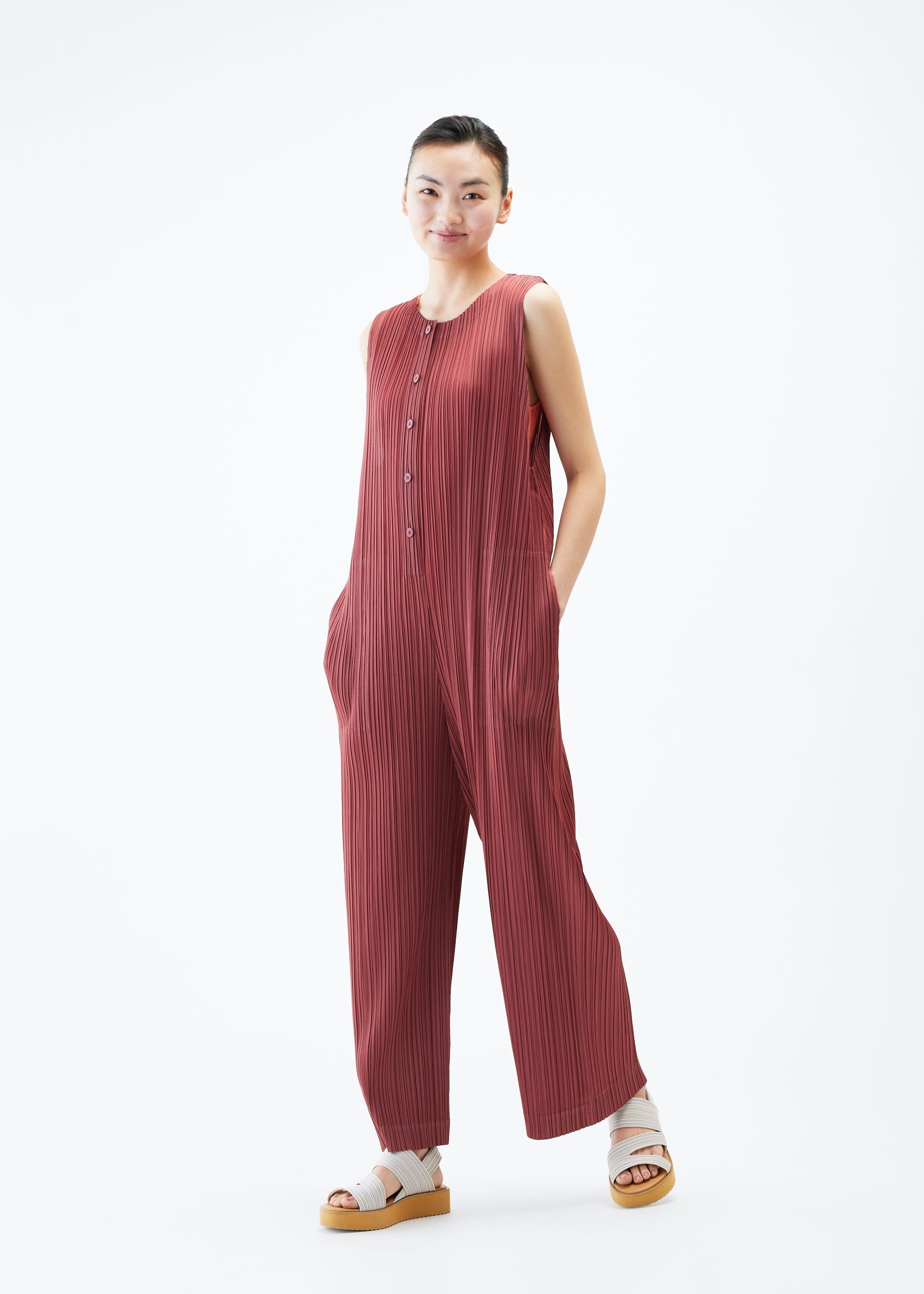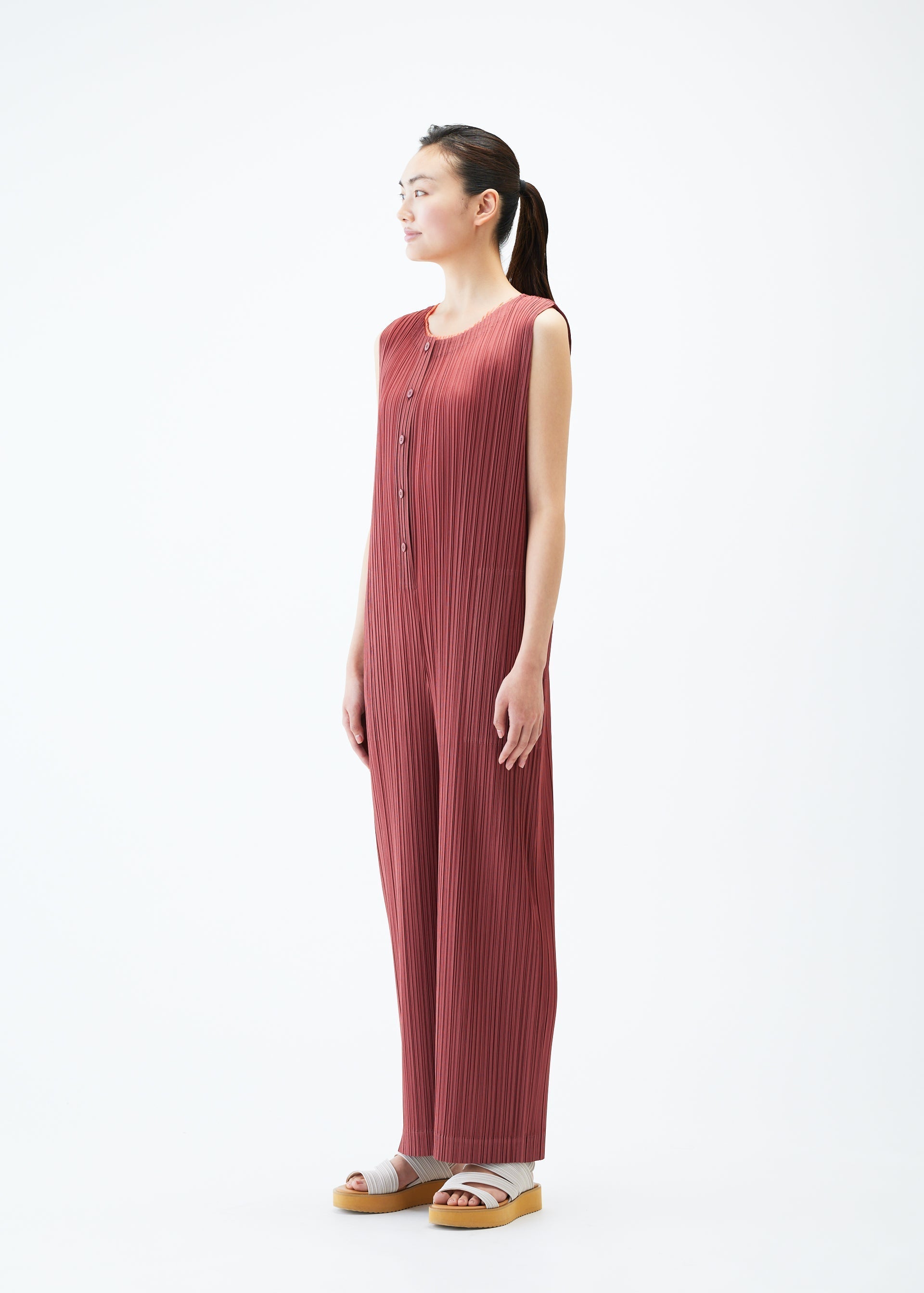 This jumpsuit is available in sheer colors inspired by X-rays that pass through objects. You can enjoy colorful layered outfits. It has a buttoned design with pockets on both sides.