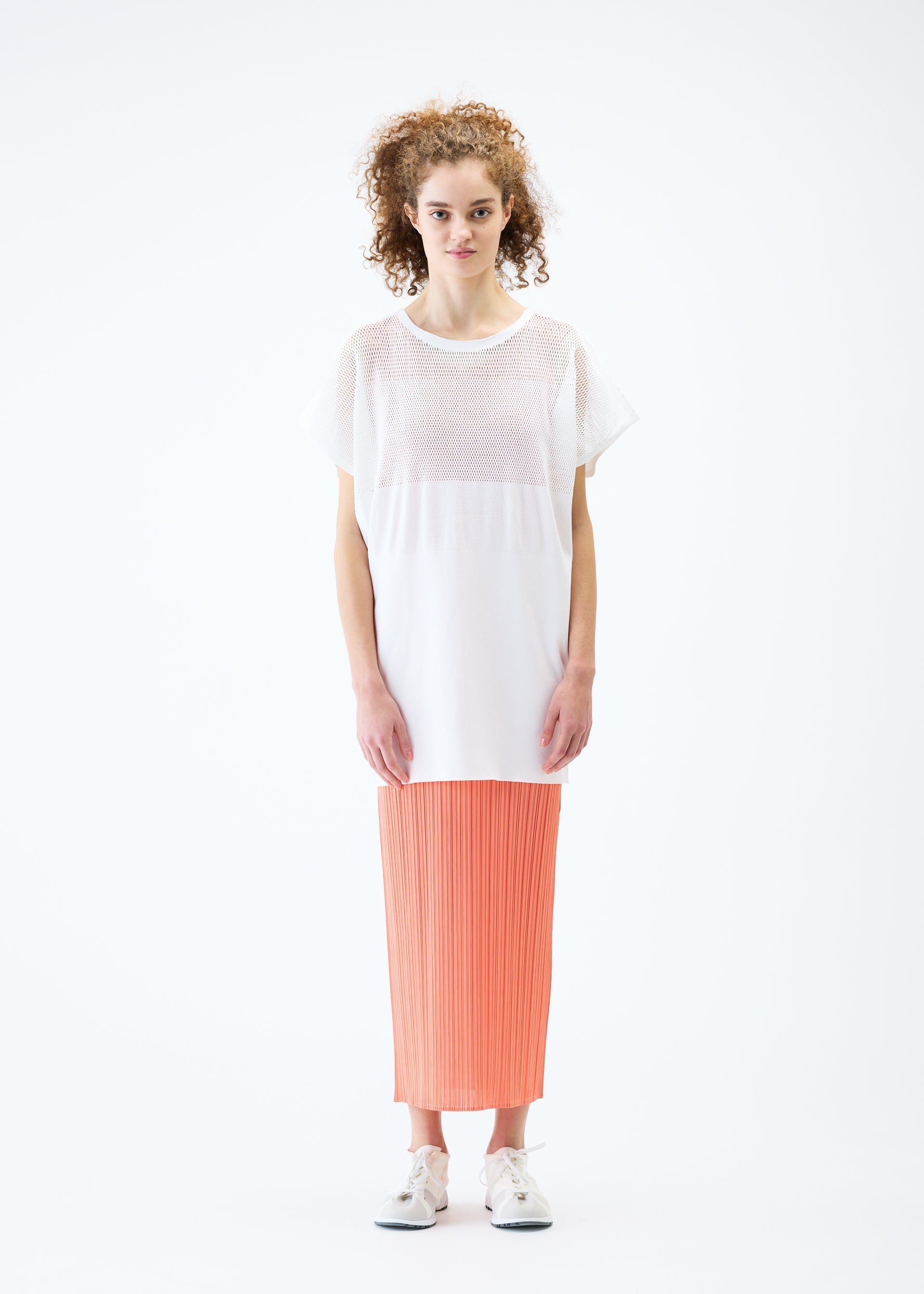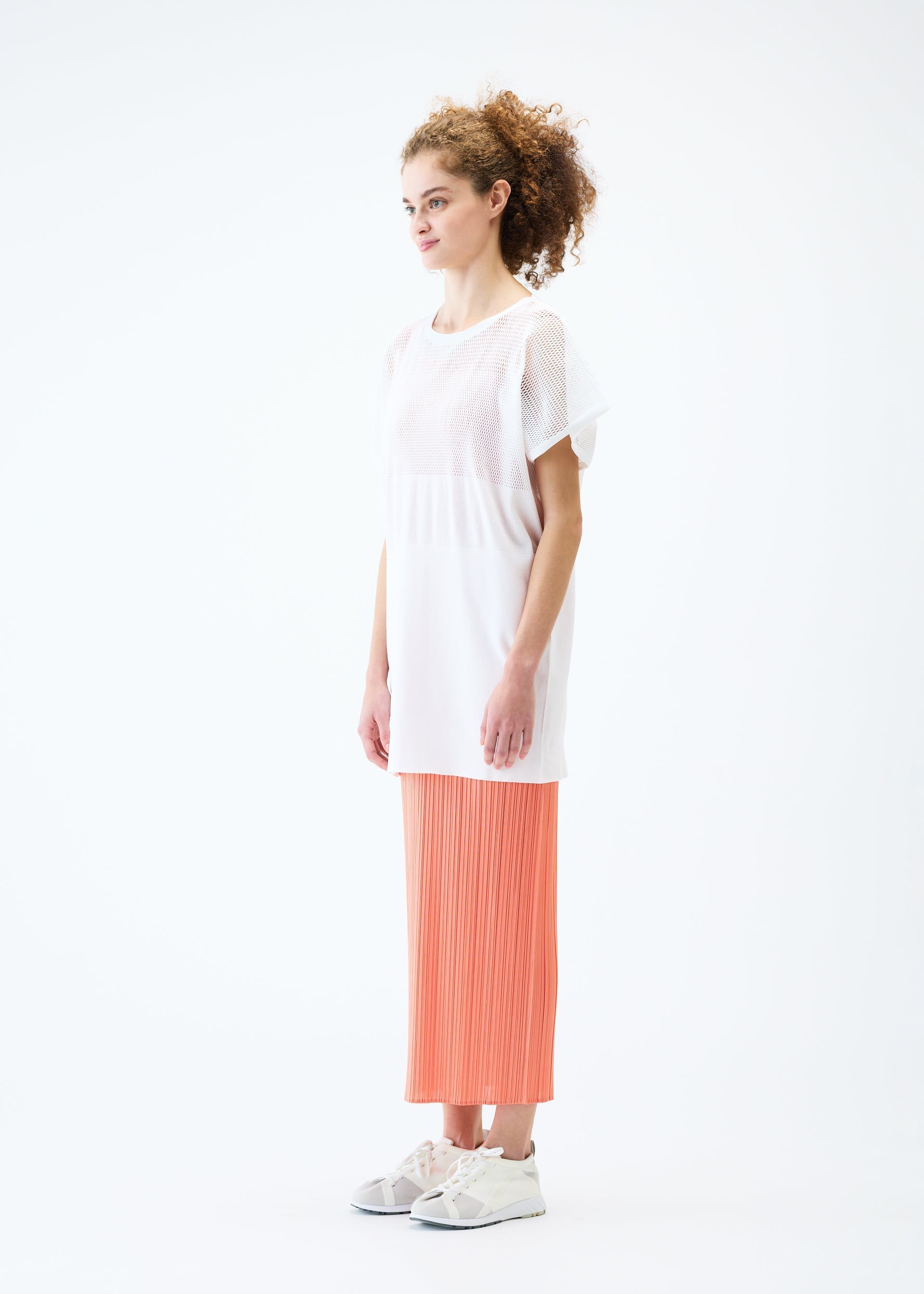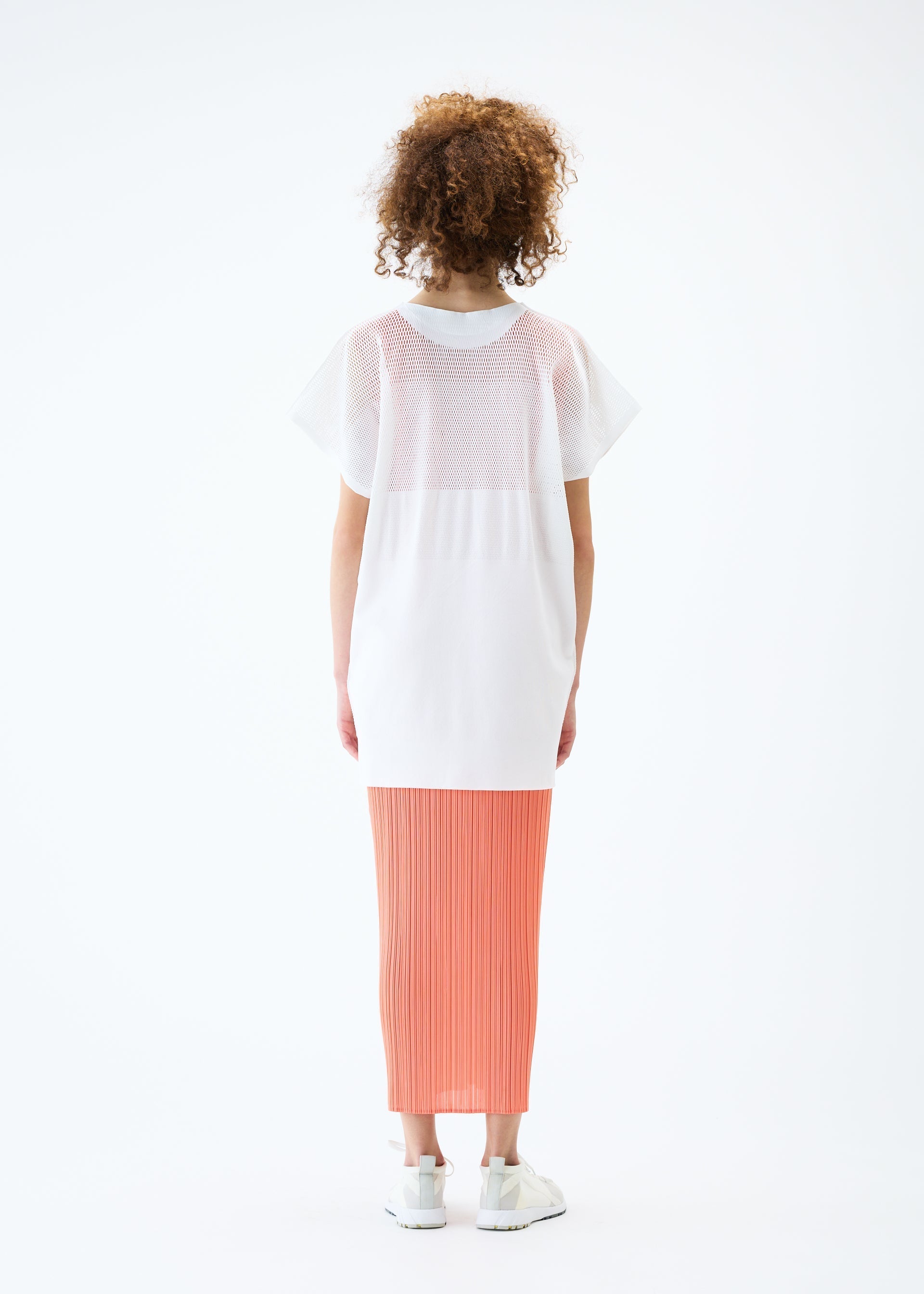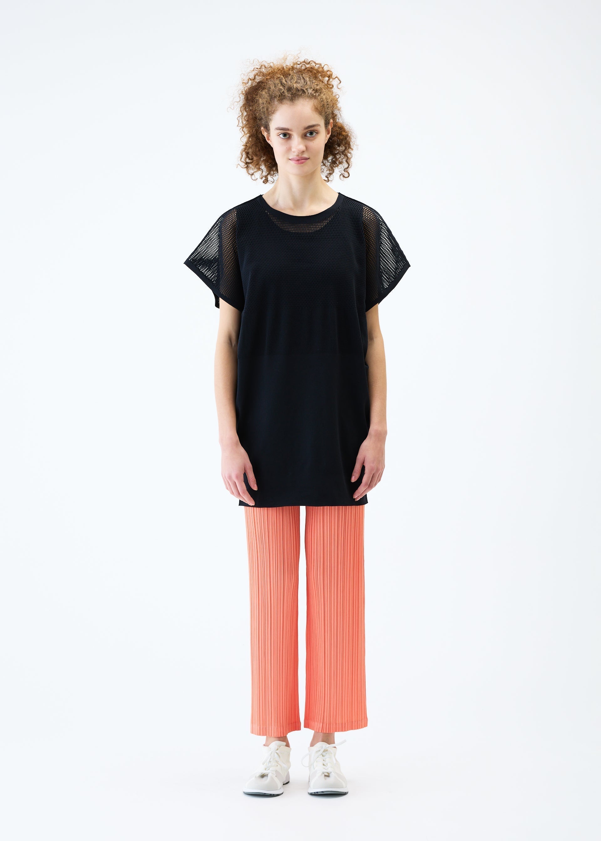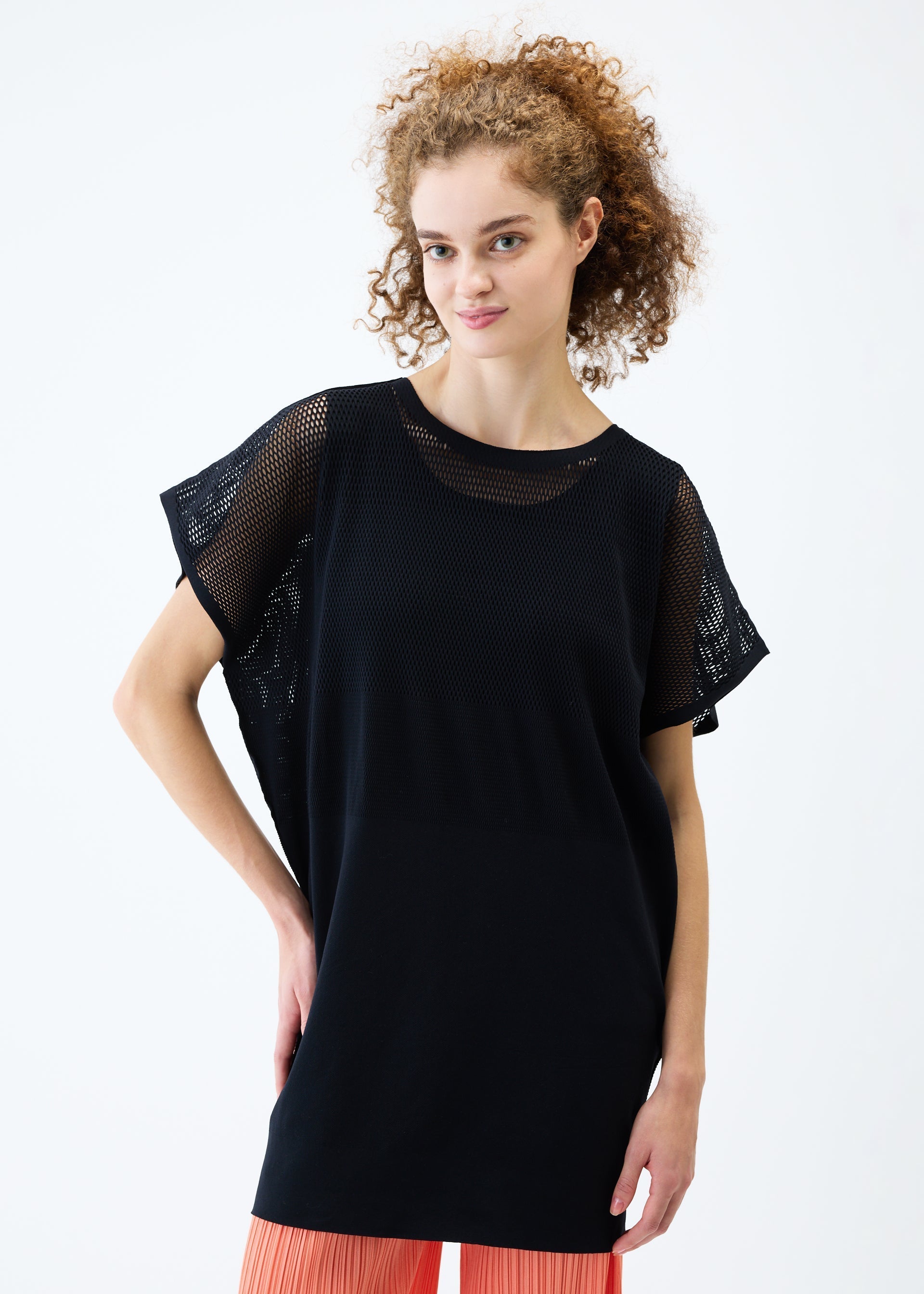This A-POC series round-neck, short-sleeved tunic uses mesh to express shades of light.