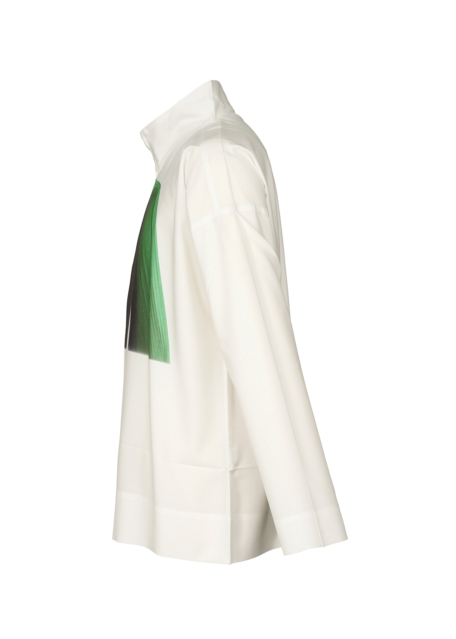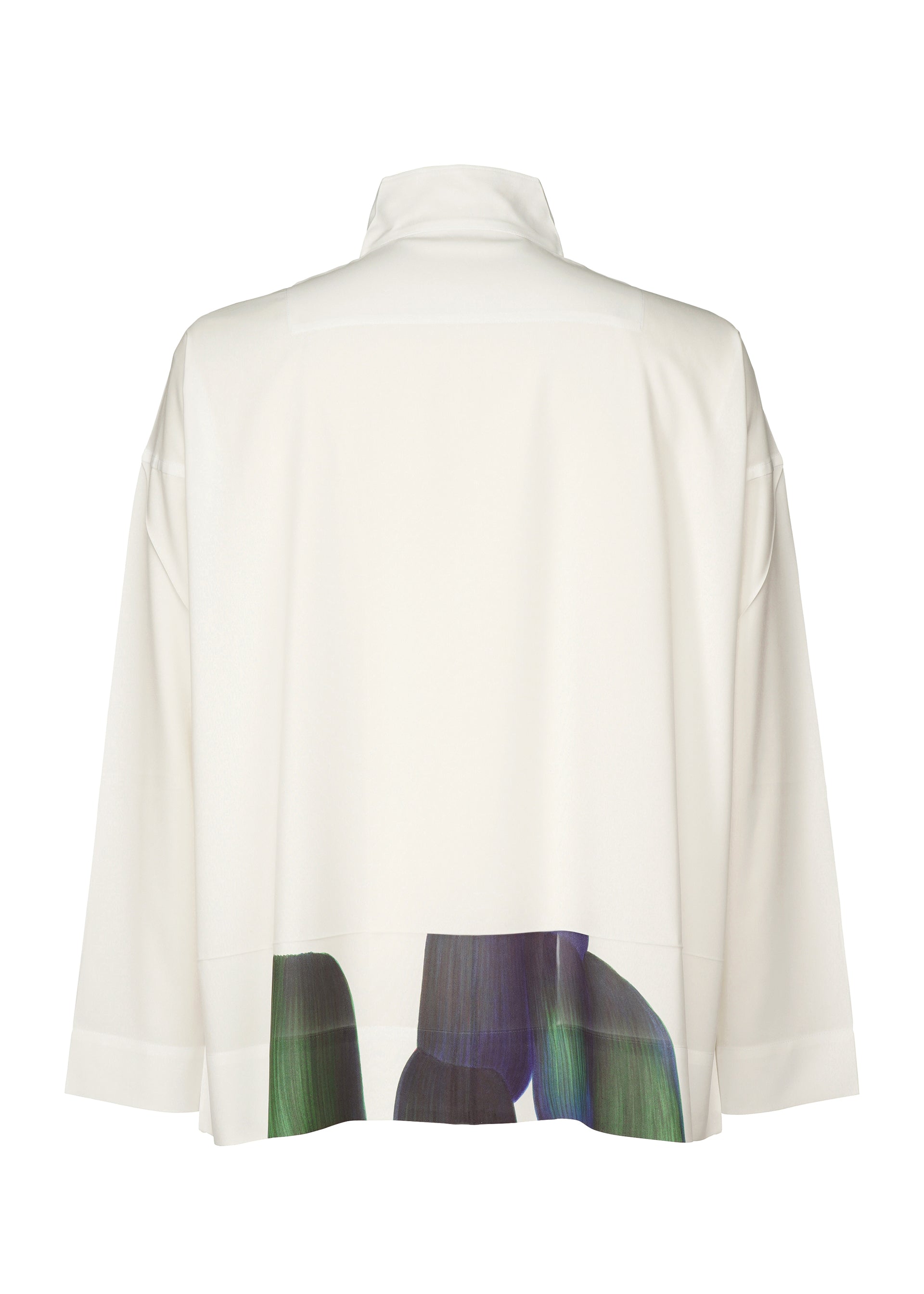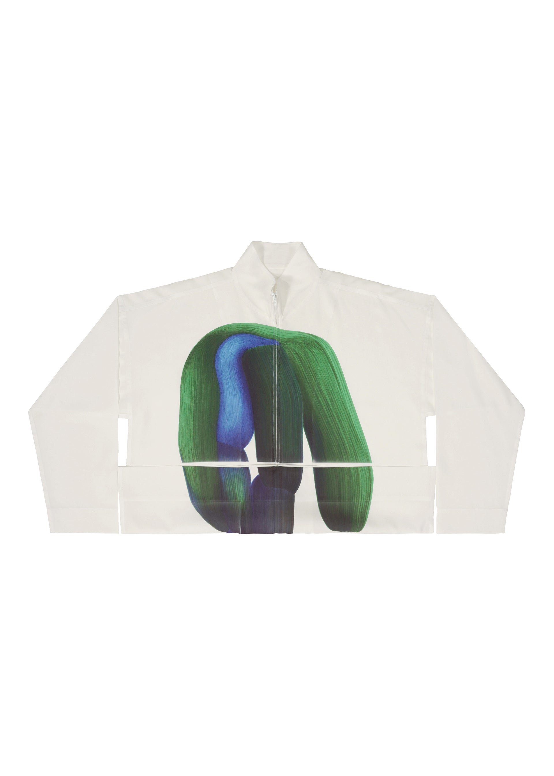 This jacket-style shirt has a transfer print featuring designer/artist Ronan Bouroullec's drawings. The sleeves and torso area are folded in a way that allows you to enjoy unique looks depending on the dispersion of the pattern.