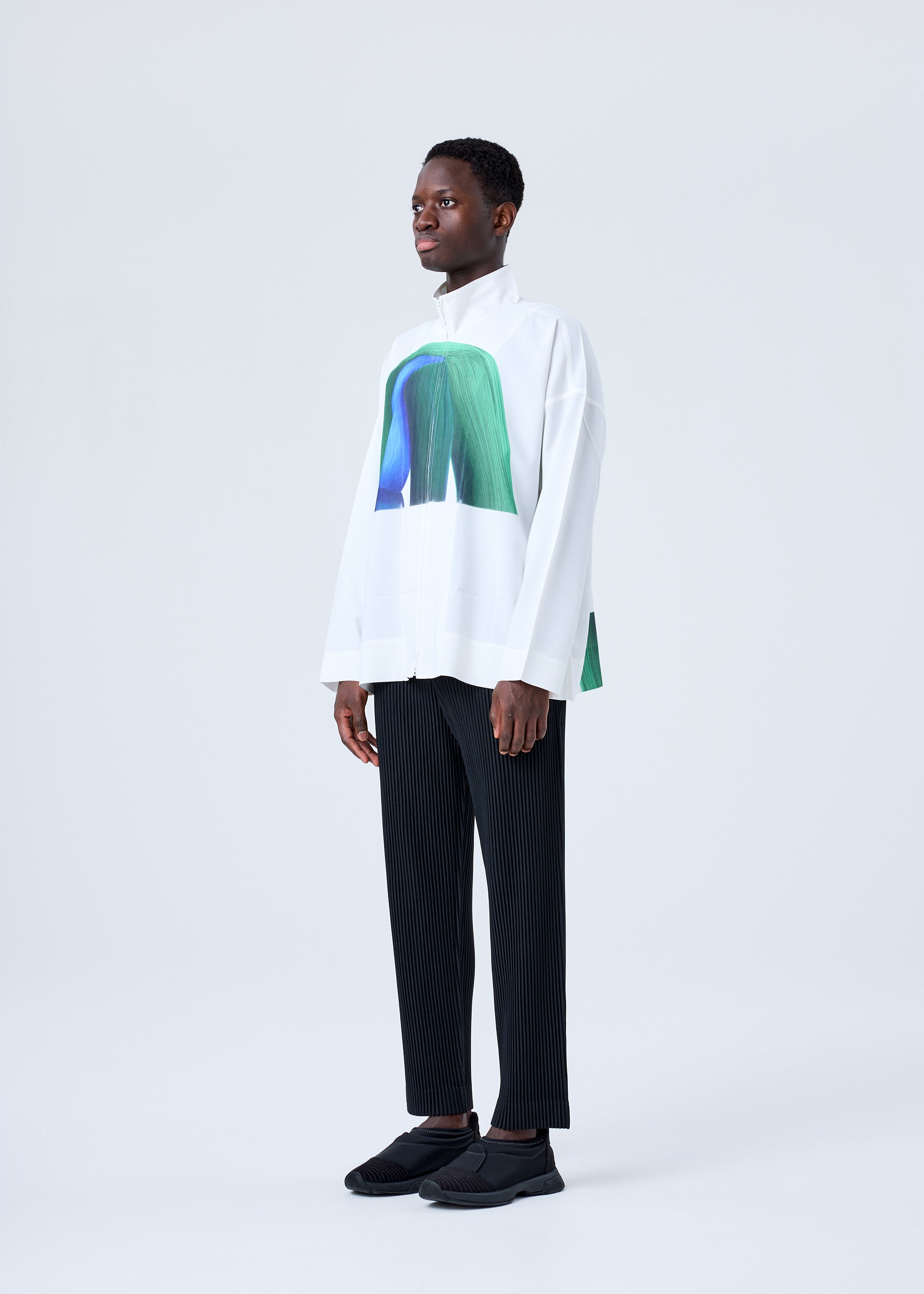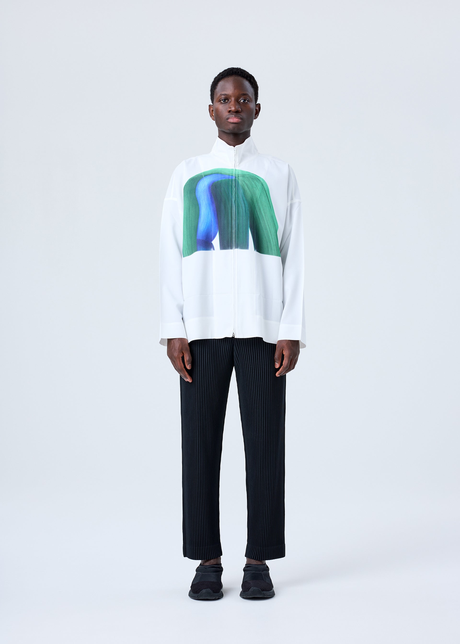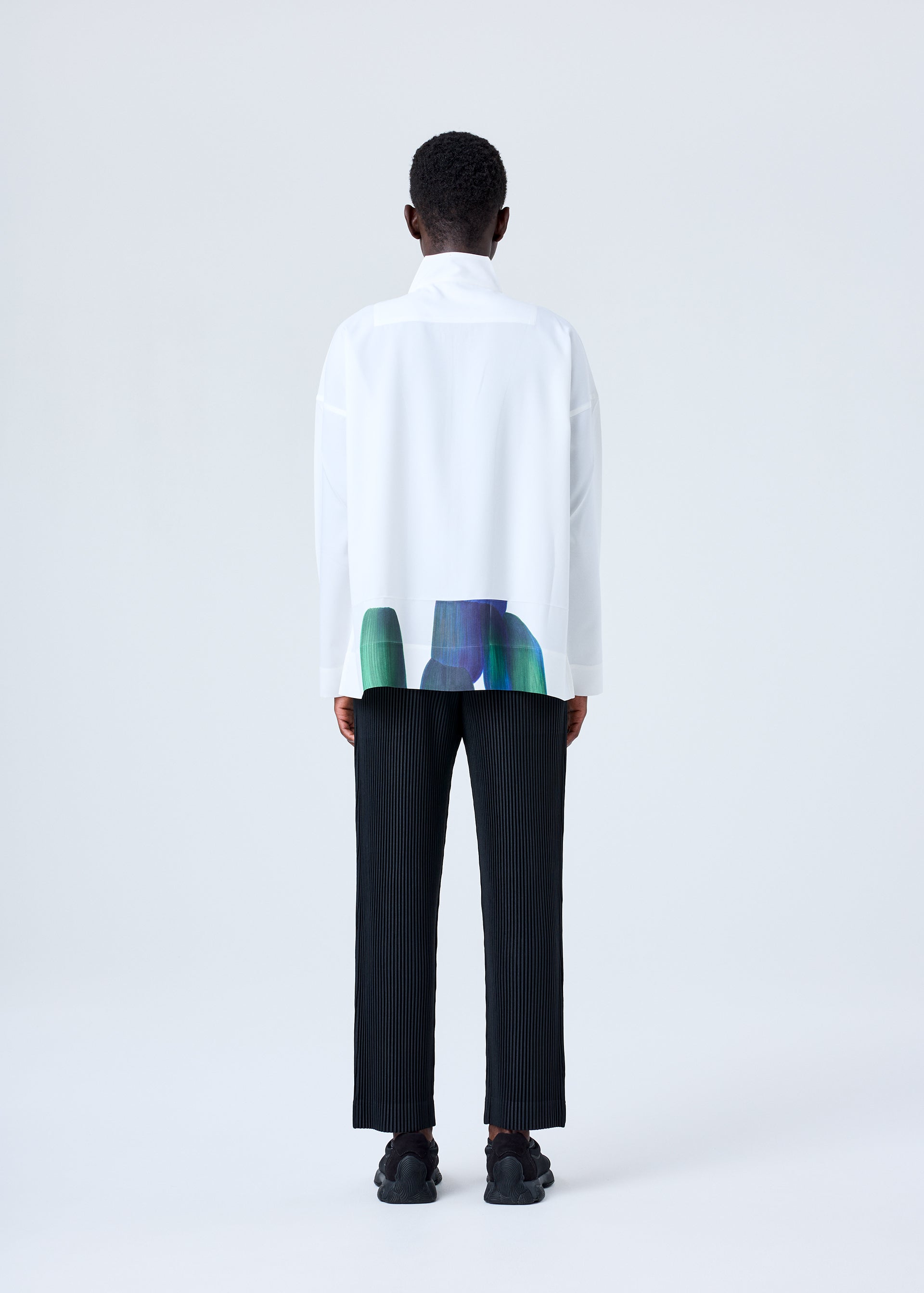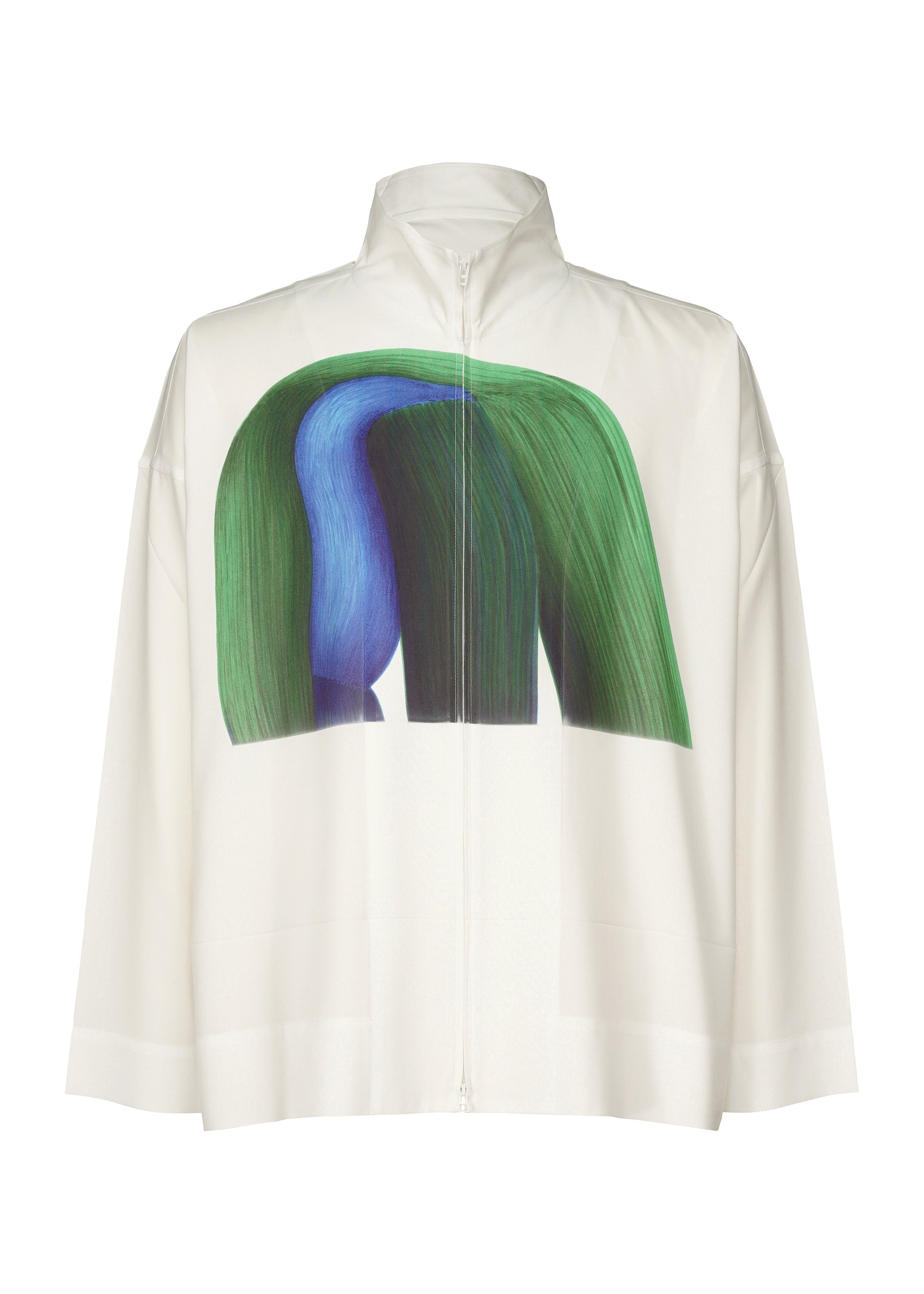 This jacket-style shirt has a transfer print featuring designer/artist Ronan Bouroullec's drawings. The sleeves and torso area are folded in a way that allows you to enjoy unique looks depending on the dispersion of the pattern.