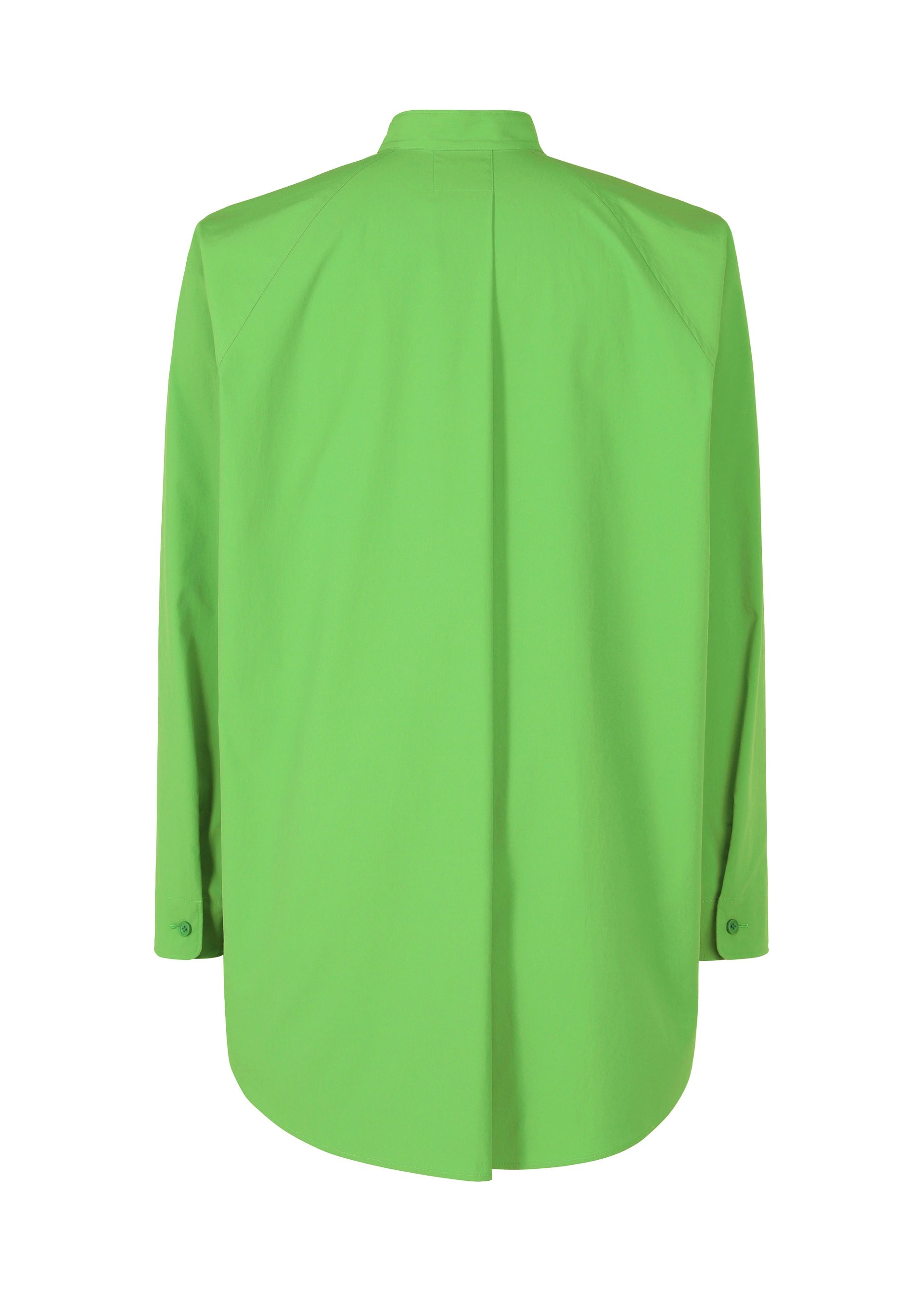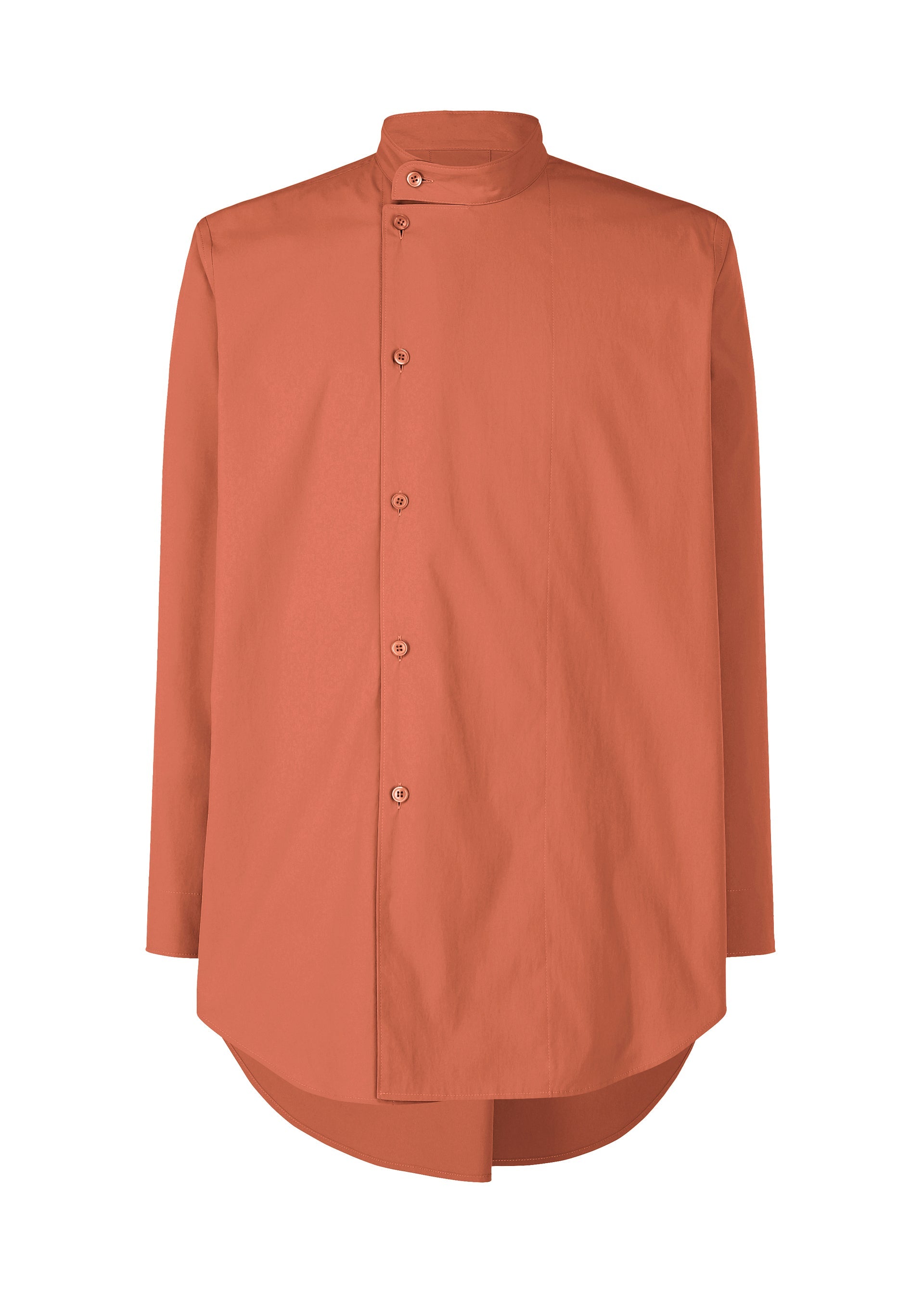 This shirt with a standing collar is available in deep color tones using yarn-dyed thread. It has a simple design that is easy to style in outfits.