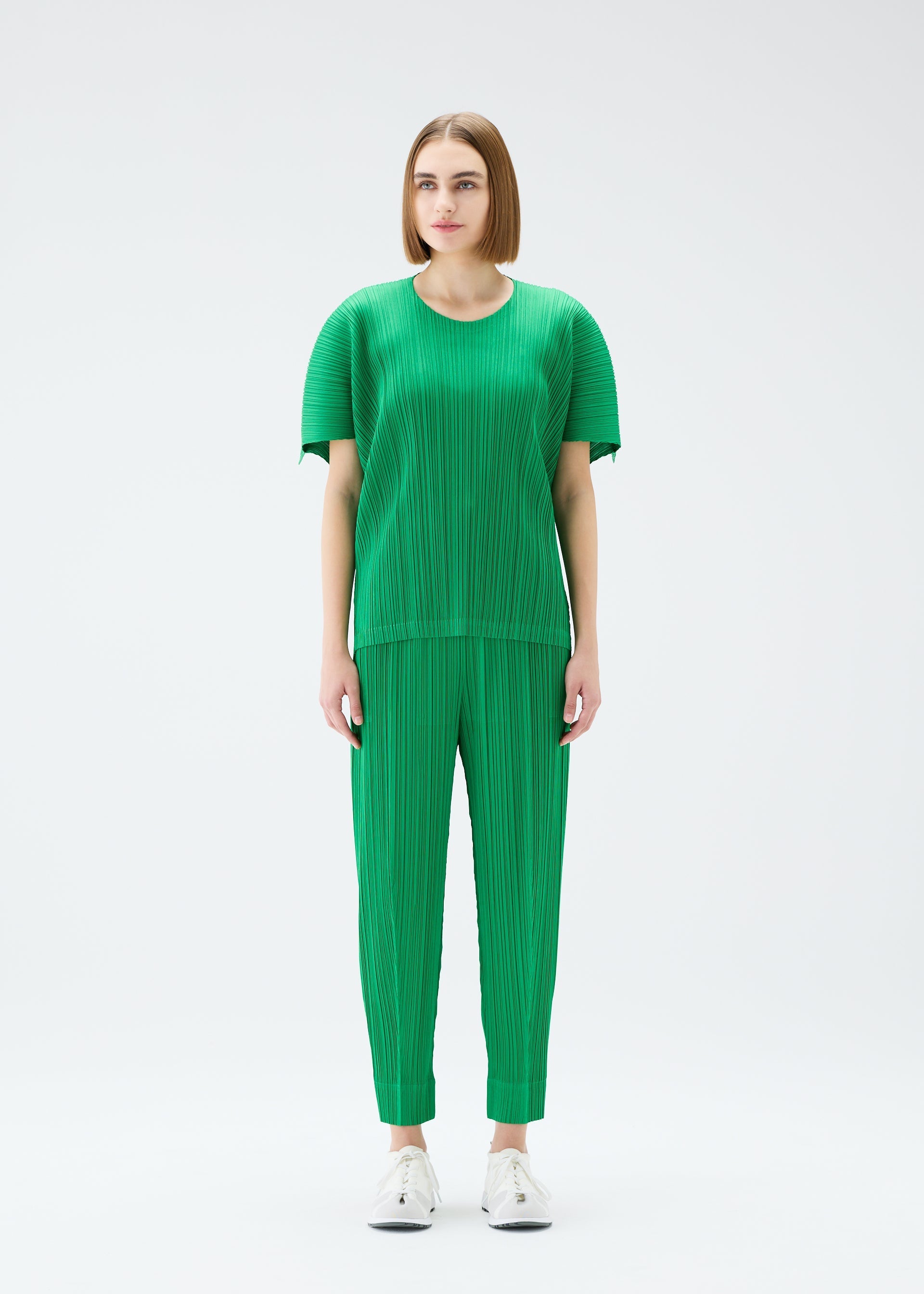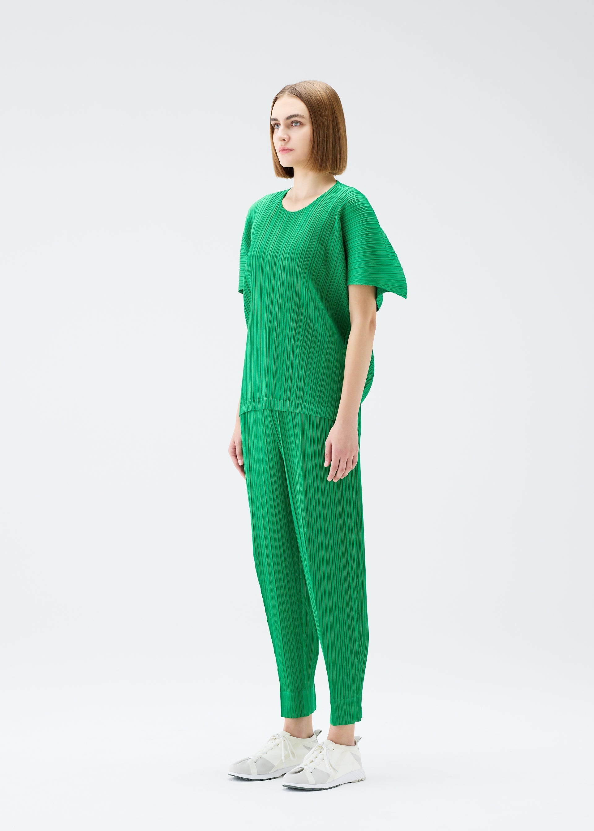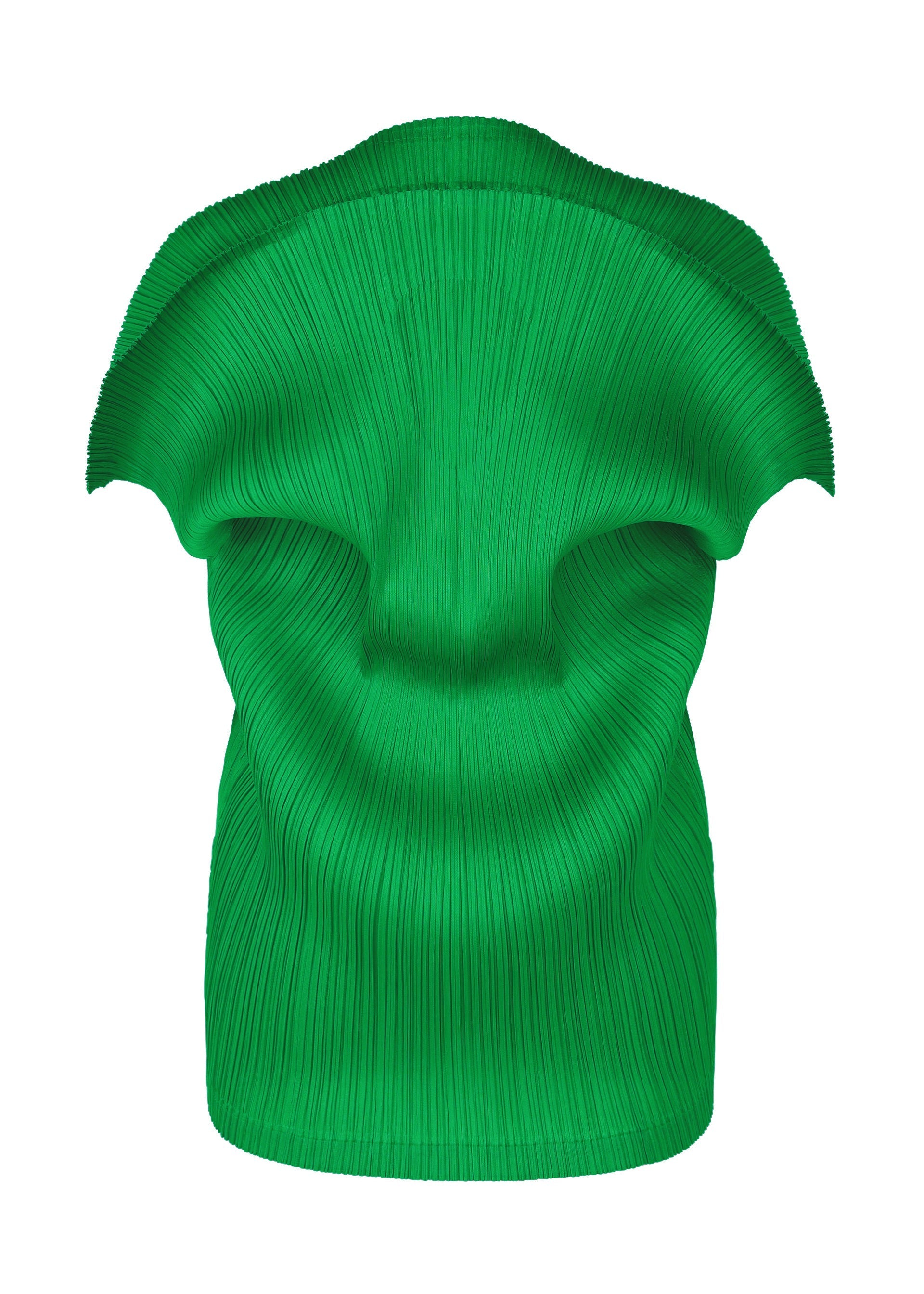 This series features relaxed silhouettes inspired by minerals from an unknown planet. The items feature square shapes that resemble mineral forms when the garments are laid flat. This pleated top has a relaxed, draped fit, round neck, and flared short sleeves.