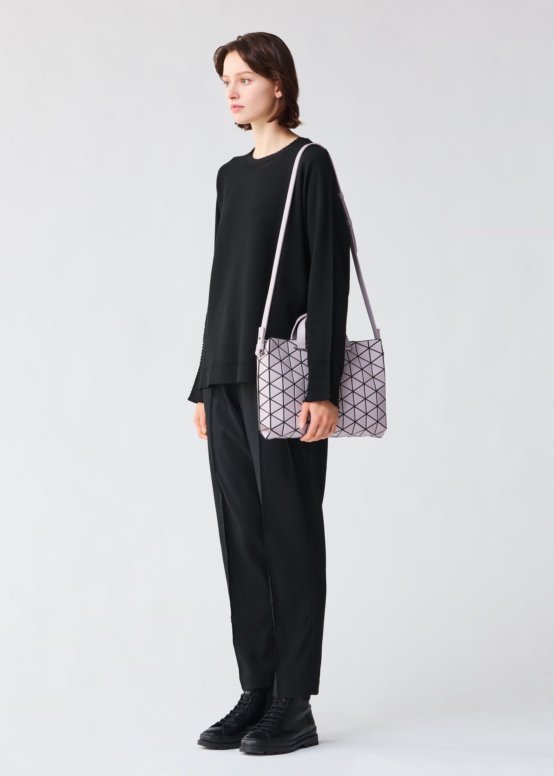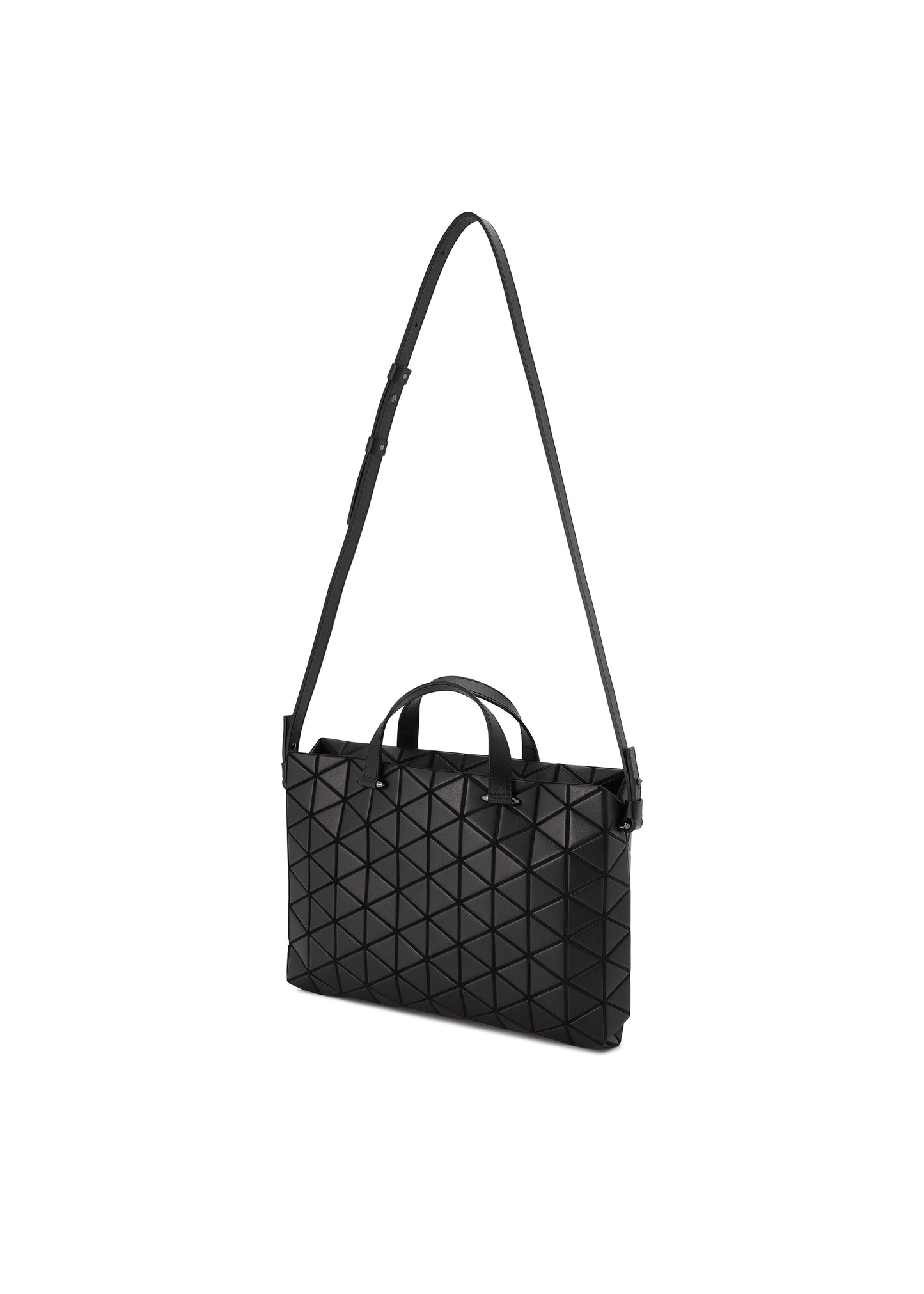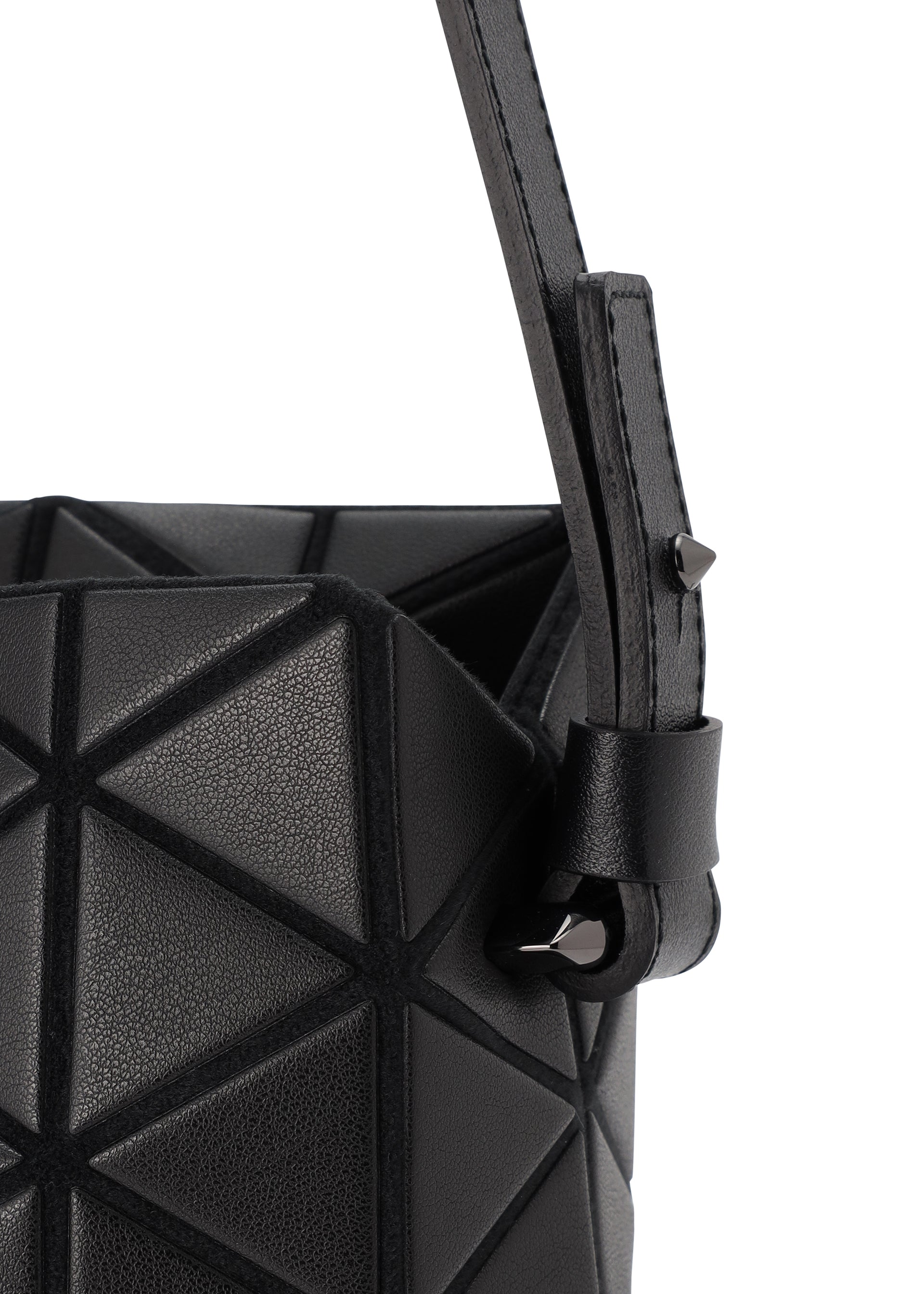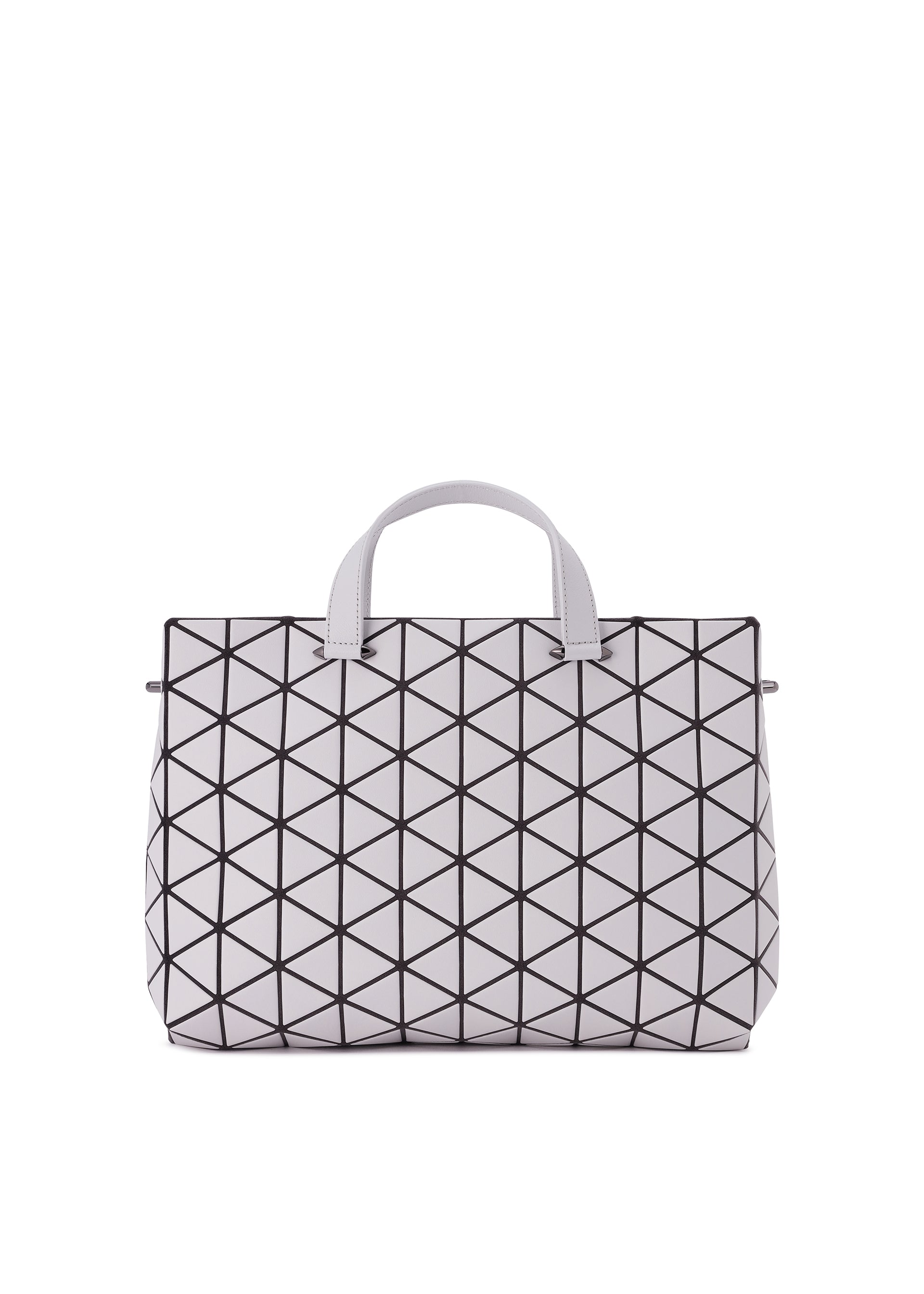 This handbag is characterized by its shape resembling a barrel (tonneau in French) composed of equilateral triangle pieces. The use of a leather-like matte material gives it an elegant feel. The strap is removable. It can be used for wide-ranging situations as it can hold A4-size documents.