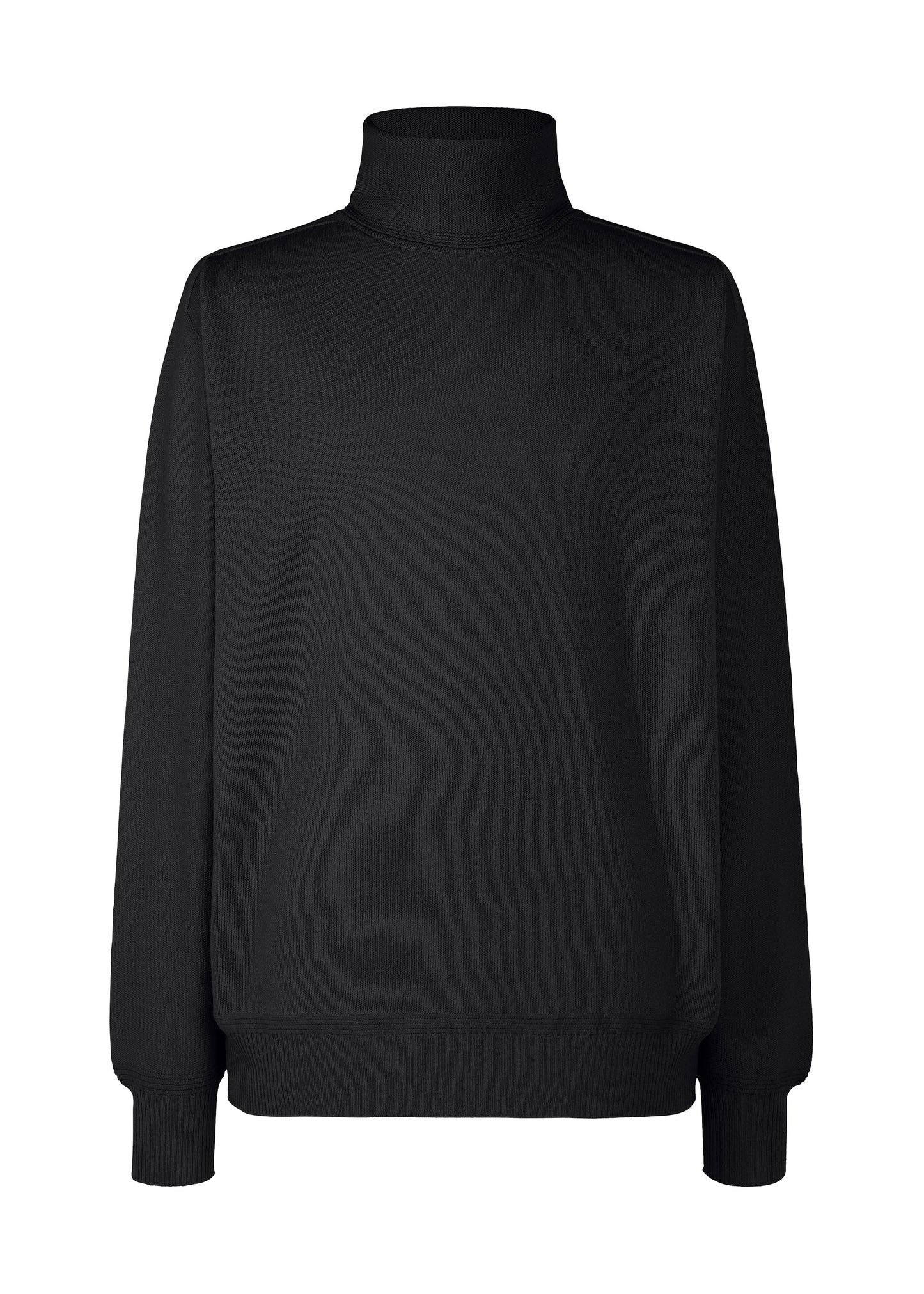 This turtleneck knit is characterized by its light, warm look. The elastic puffiness of the garment accentuates its relaxed silhouette.